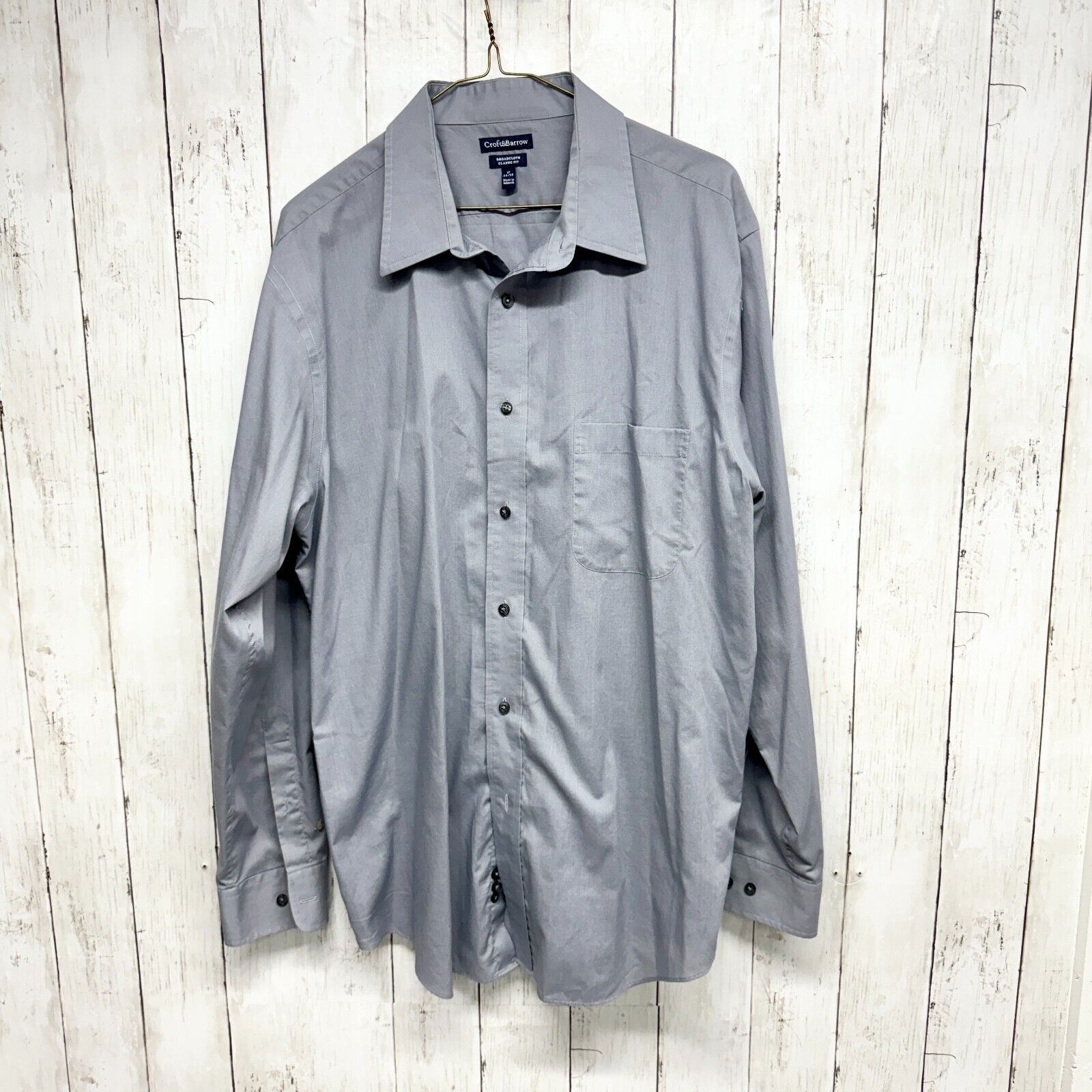 CROFT & BARROW Button Down Men Size 17 34/35 Blue 60% Cotton Blue Front Pocket