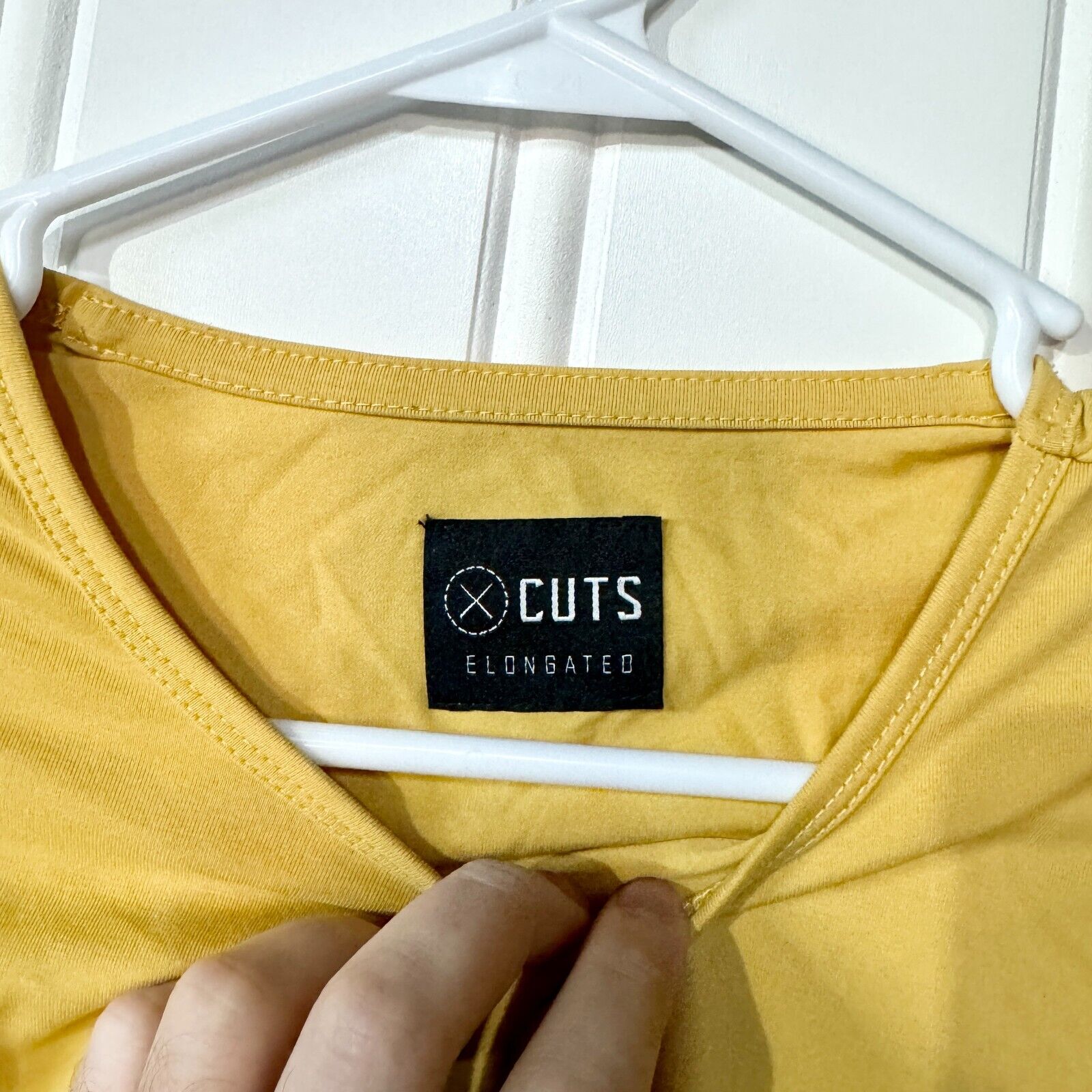Cuts Long Sleeve Slim Fit Crewneck Yellow Cotton Spandex Top Size Medium