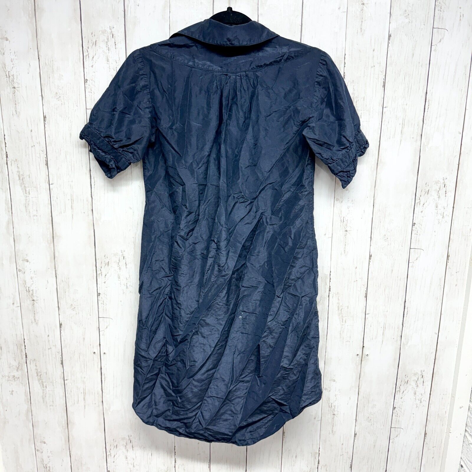Cynthia Rowley Dress Women Size XS 100% Silk Navy Bleu Short Sleeve Deep V Neck