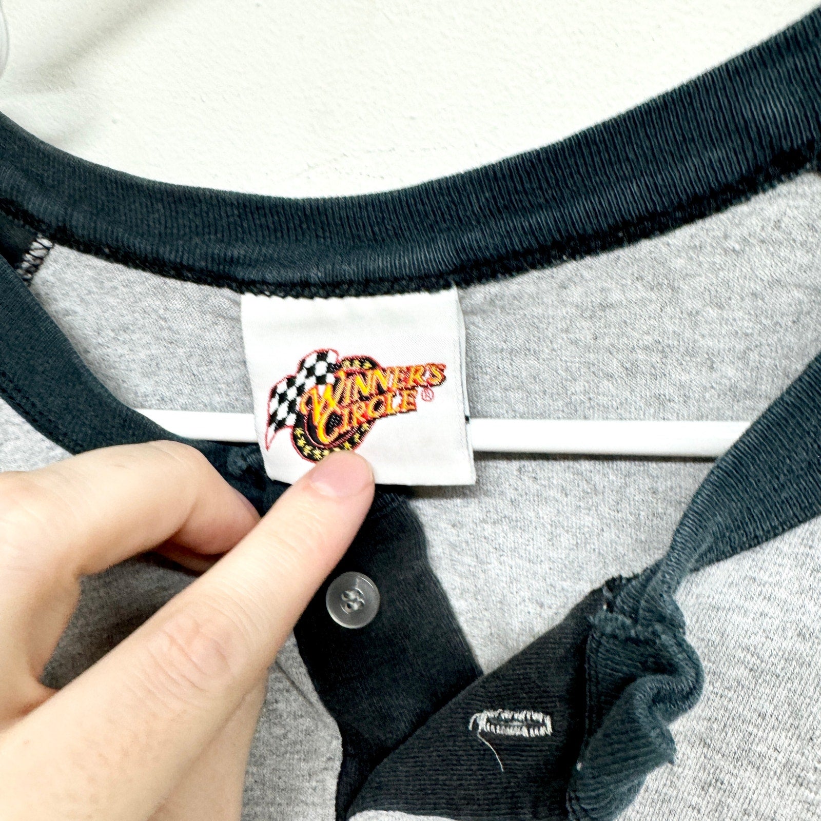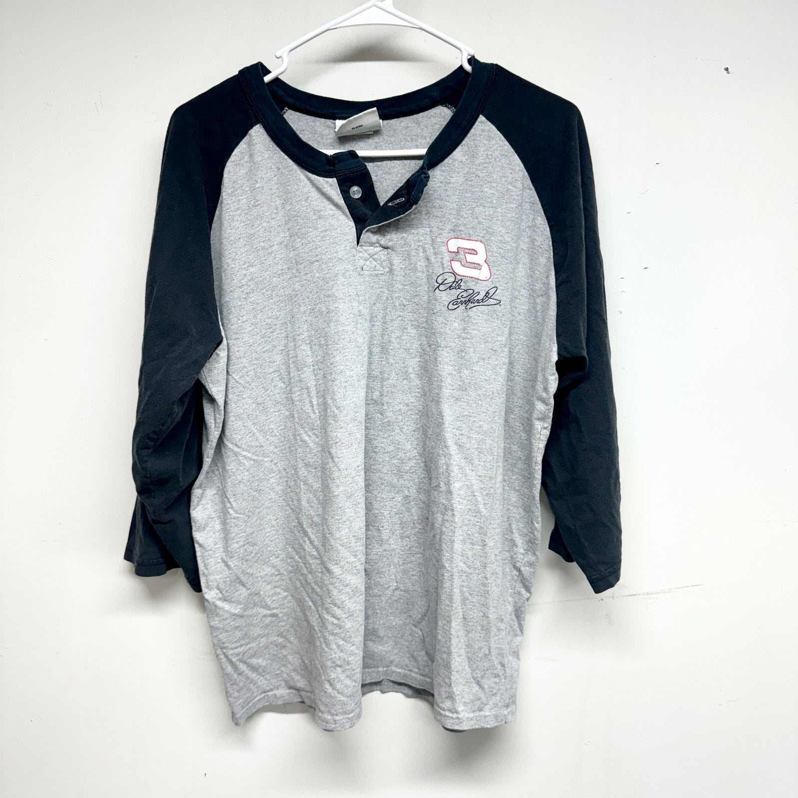 Dale Earnhardt Mens 3/4 sleeve Grey & Black Henley Shirt Size Small