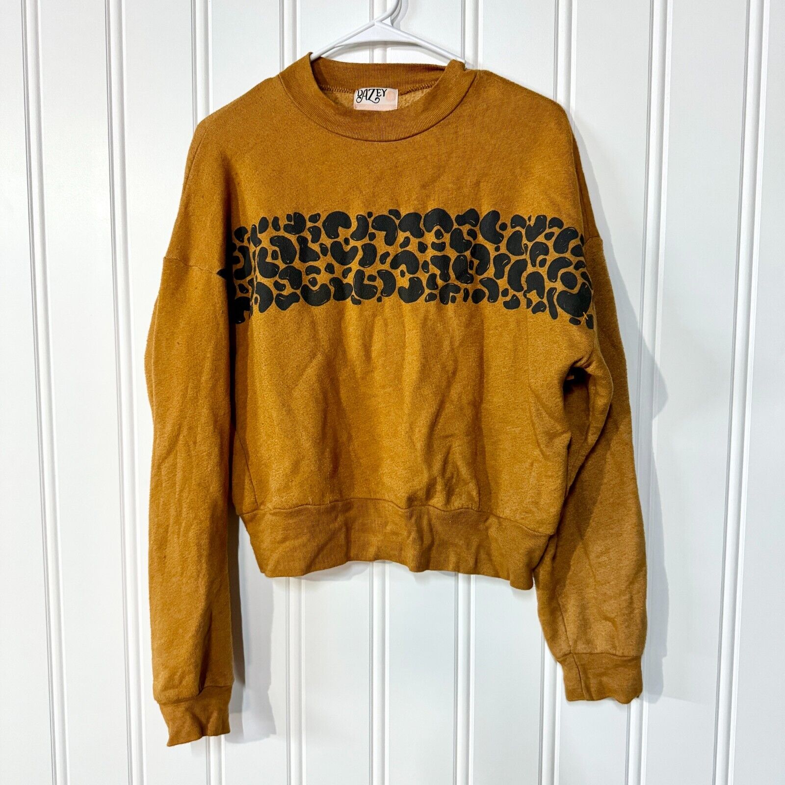 Dazey LA Mustard Yellow Crewneck Animal Print Cotton Sweater Size Small