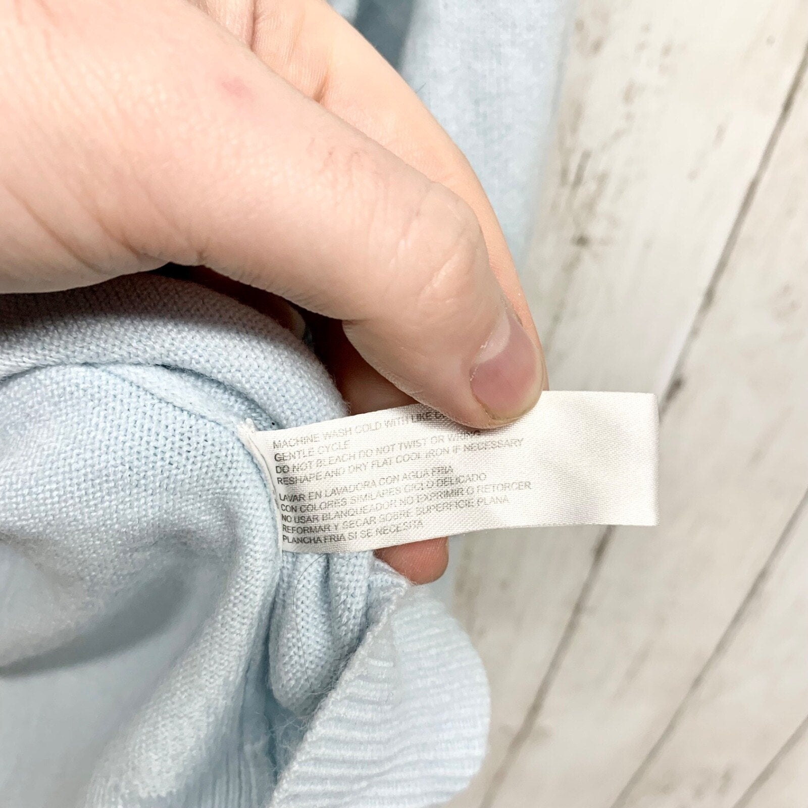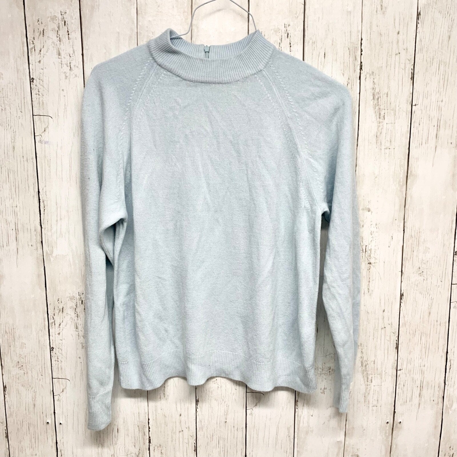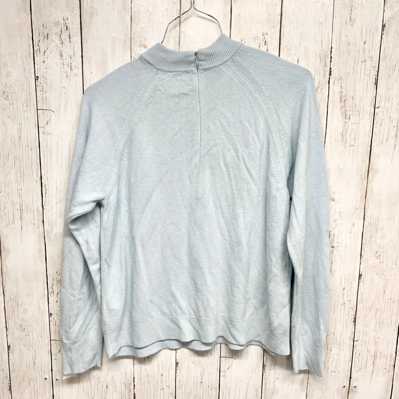 Debbie Morgan Sweater Women Size Large Mock Ribbed Neck Zip Back Light Blue