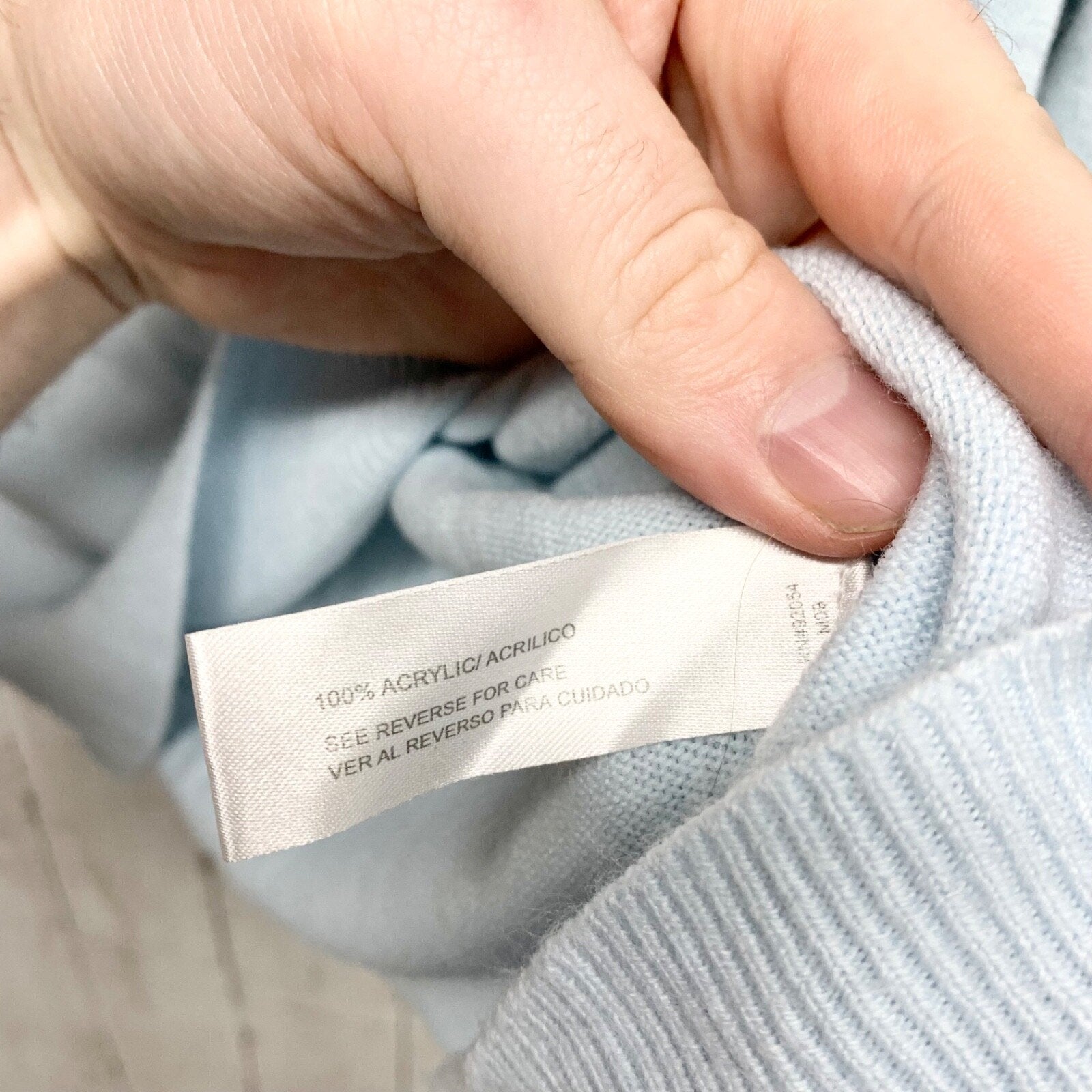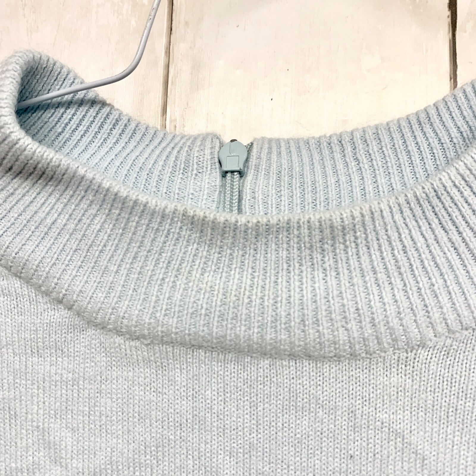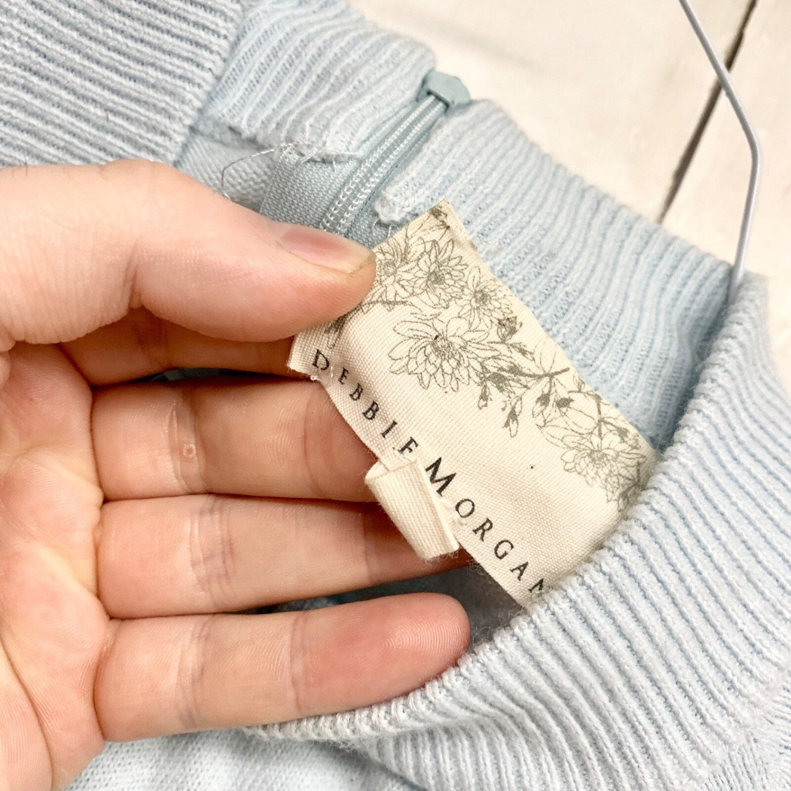 Debbie Morgan Sweater Women Size Large Mock Ribbed Neck Zip Back Light Blue