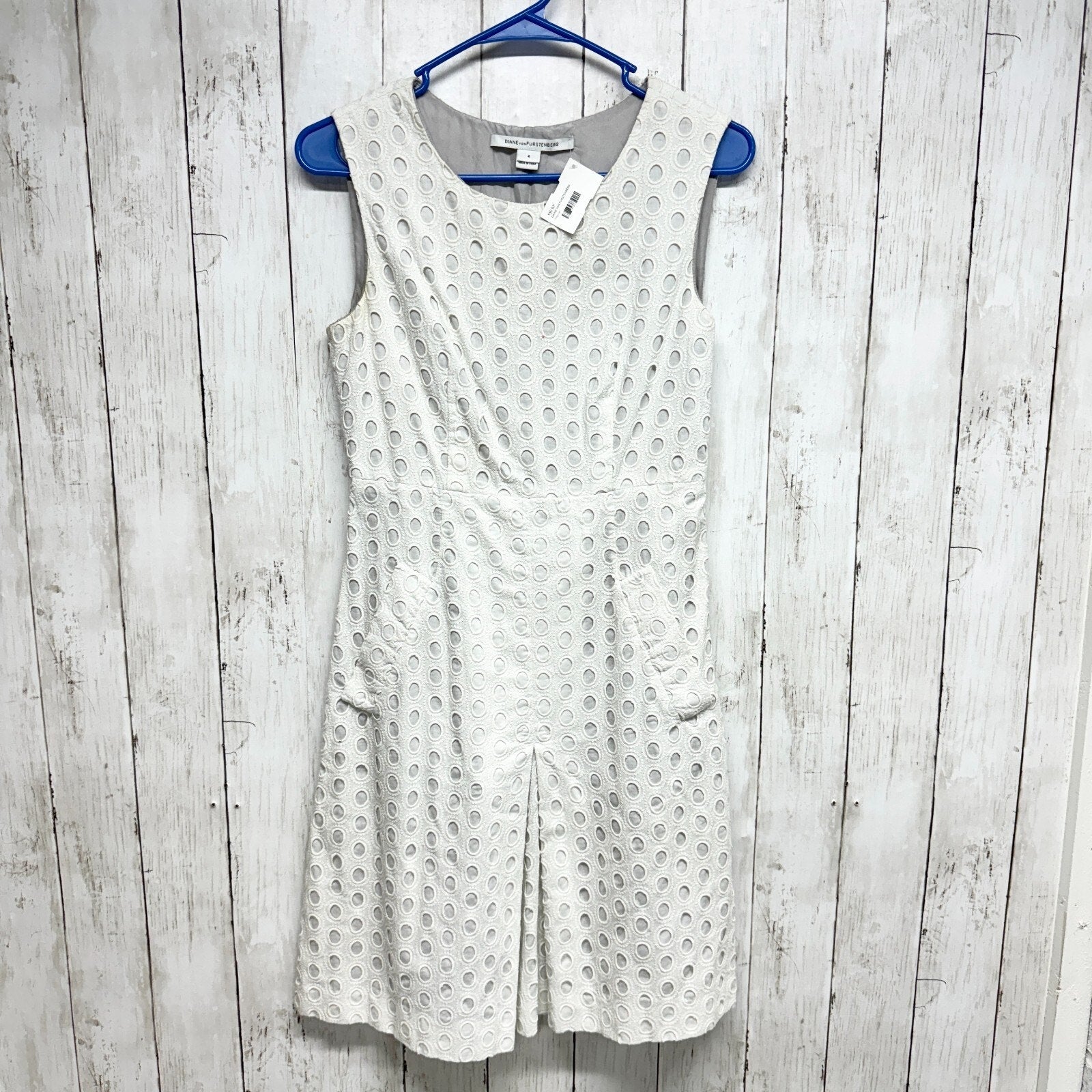 Diane Von Furstenberg Dress Women Size 4 White Double Pocket Carpreena Eyelet