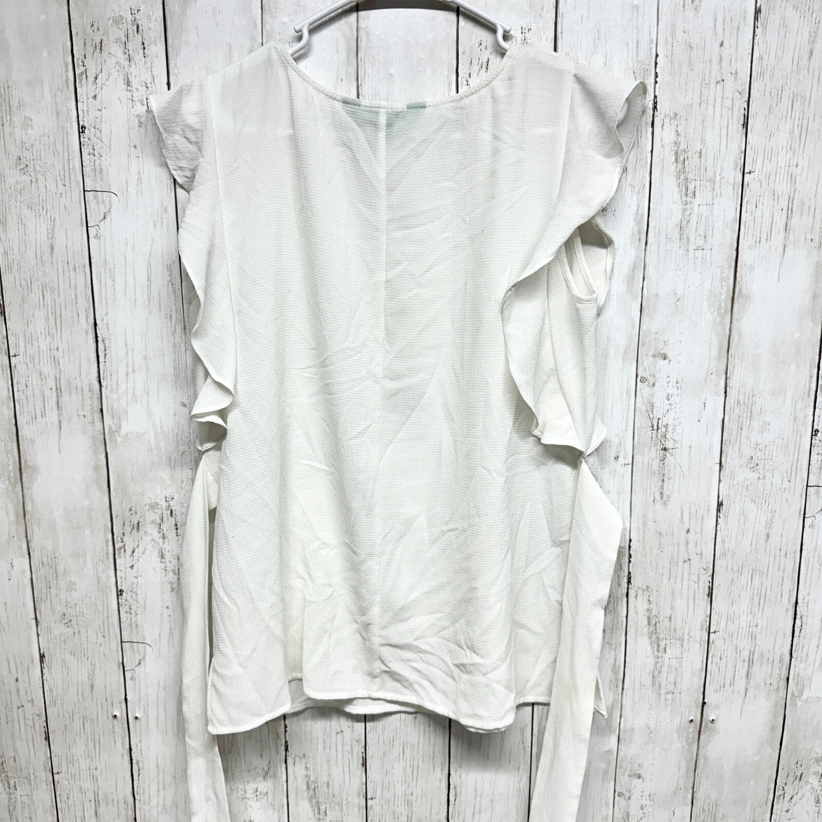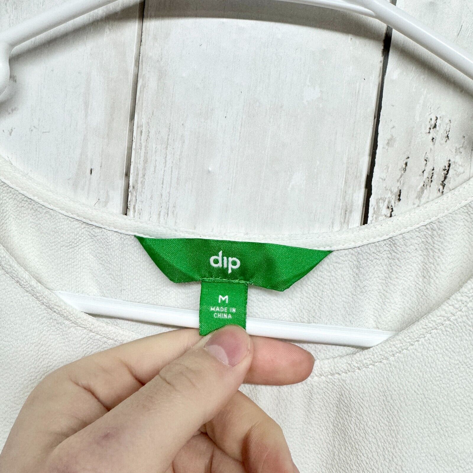 DIP Blouse Women Size Medium Ruffled pleated Sides Sleeveless White Round Neck