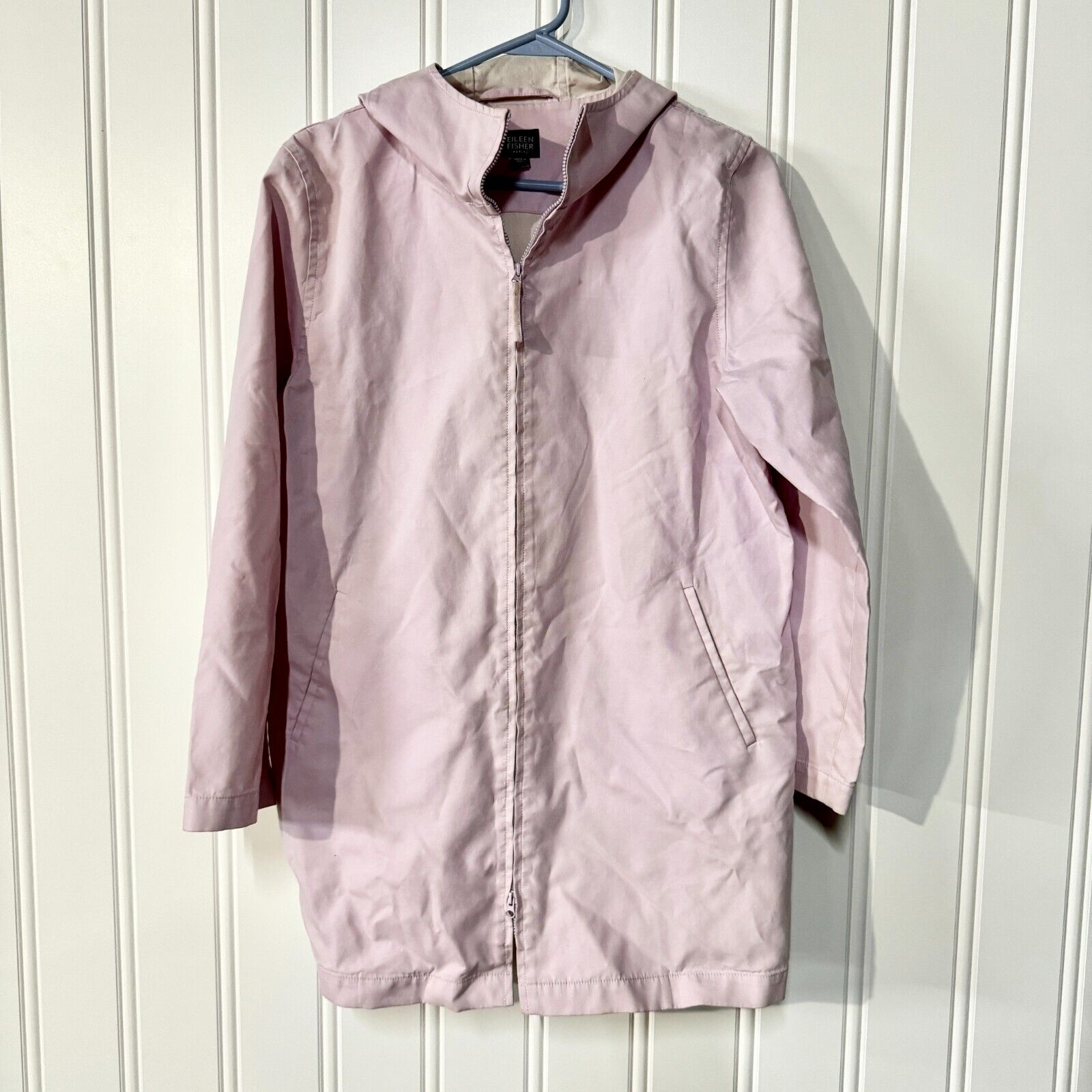 Eileen Fisher Jacket Full Zip Up Pink Hooded Layered Water Proof Size PM