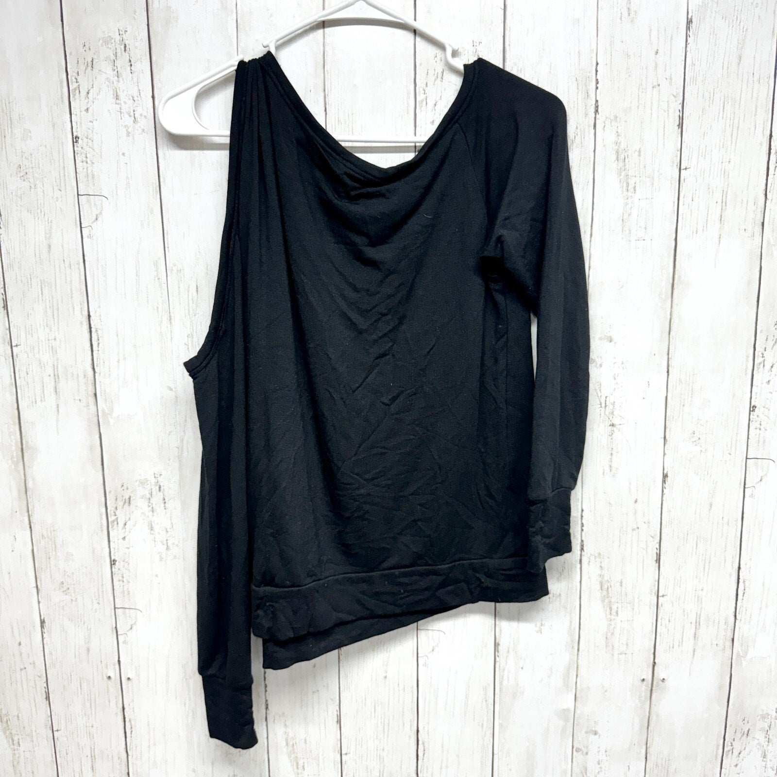 Elan Sweater Women's S One Shoulder Cutout Top Black Asymmetric Long Sleeve