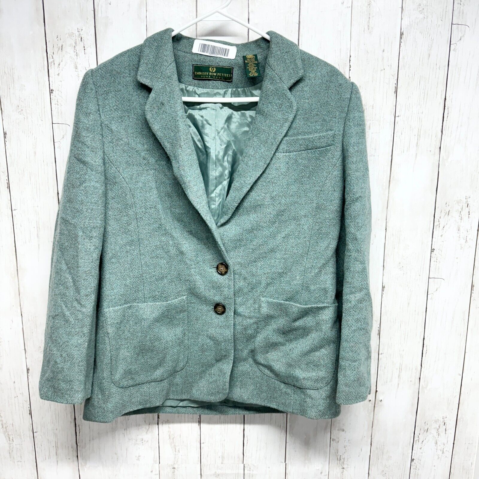 Embassy Row Petites Jacket Women Size 12P 100% Wool Button Up Teal Green Blazer
