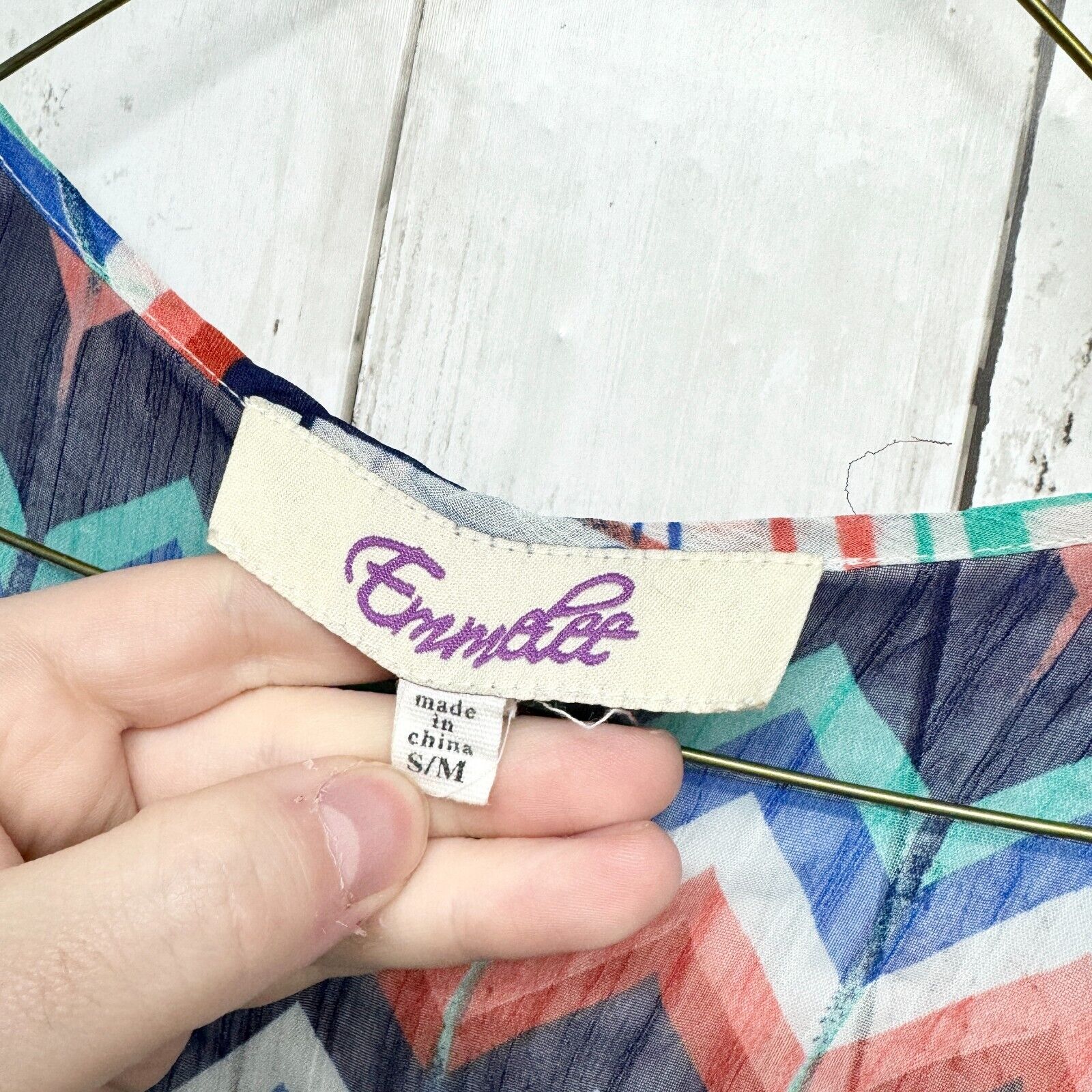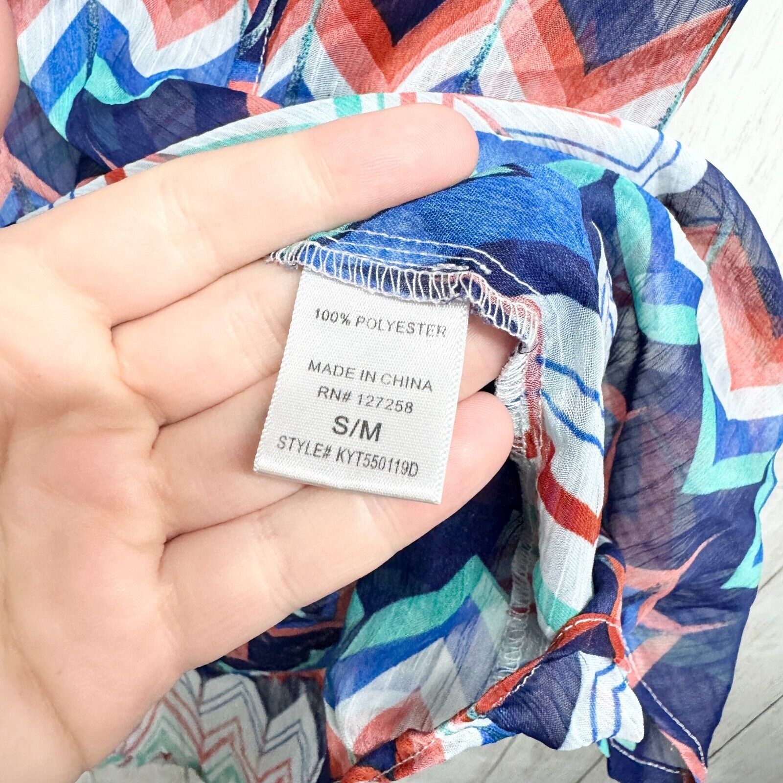 EMMLEE Swim Cover Women Sz S/M Multicolored Short Sleeve Deep V Neck Sheer Swim
