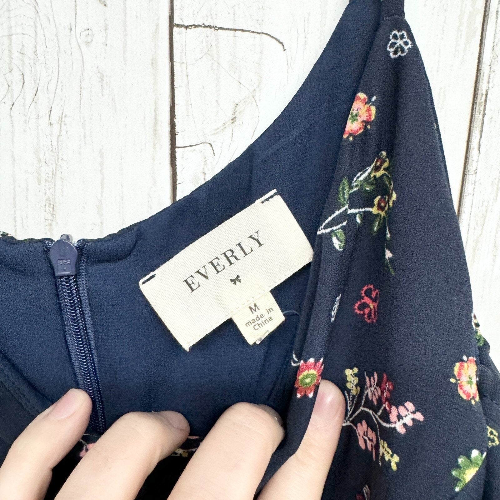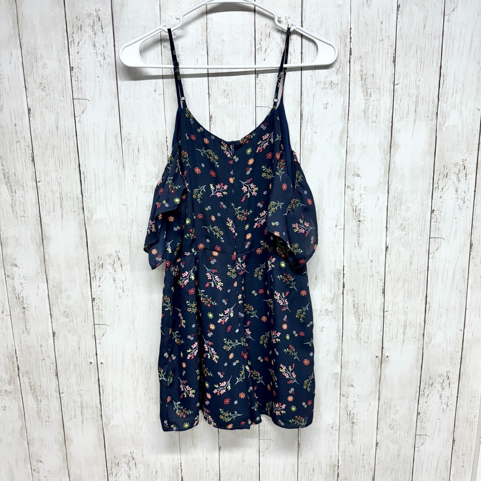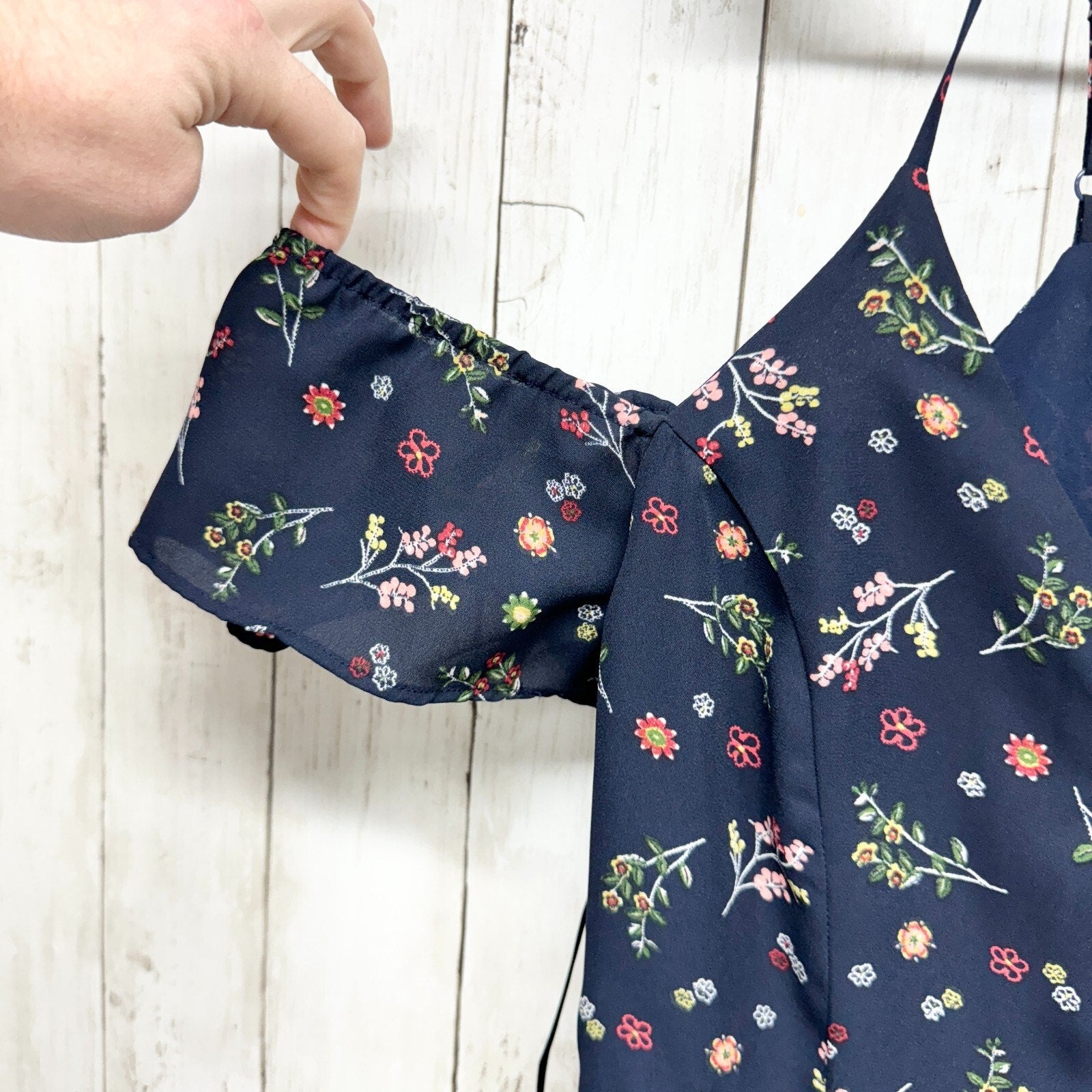 EVERLY Romper Women Size M Off Shoulder Mini V Neck Blue Floral Summer Casual
