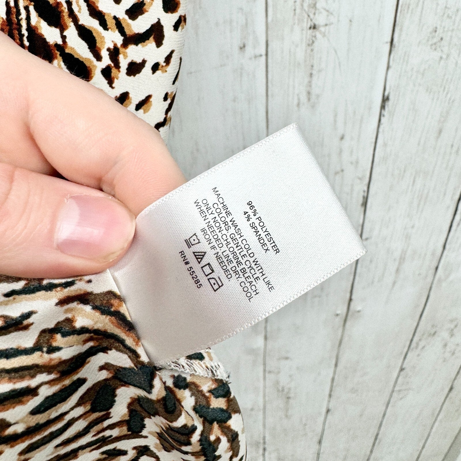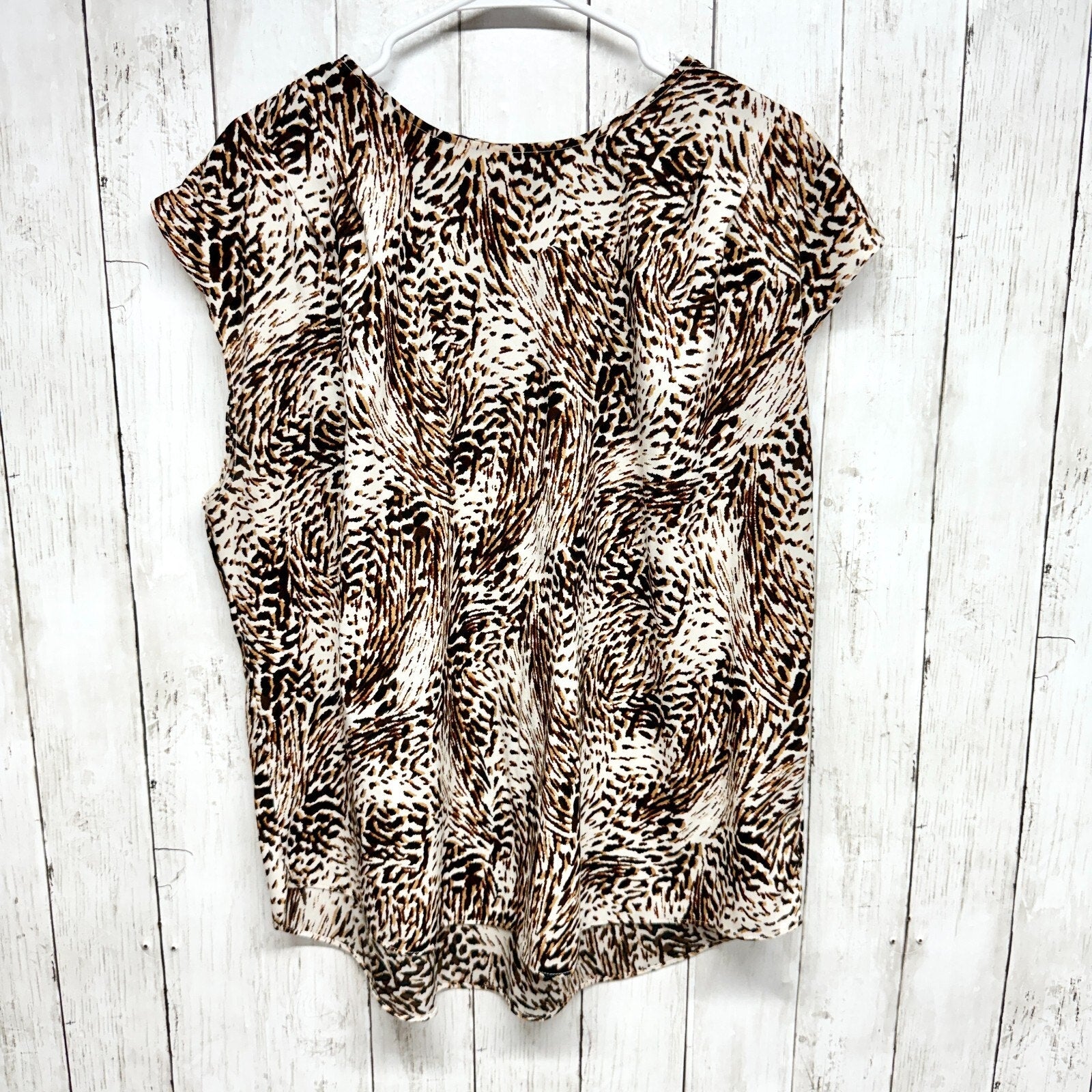 EXPRESS Blouse Women Size XL Abstract Animal Print Pleated Shoulder Top