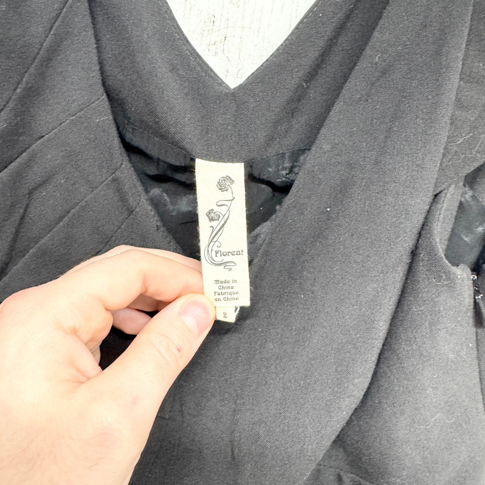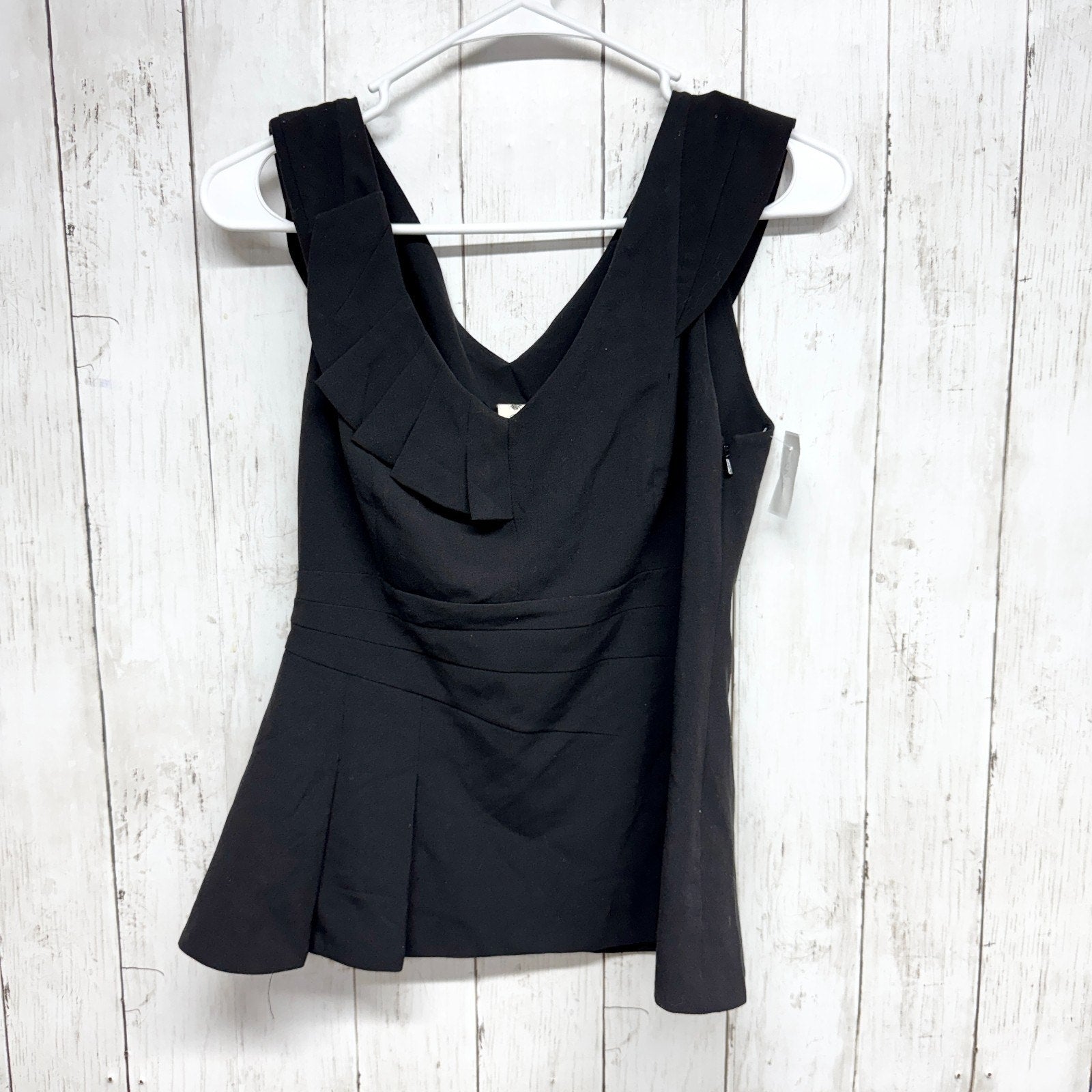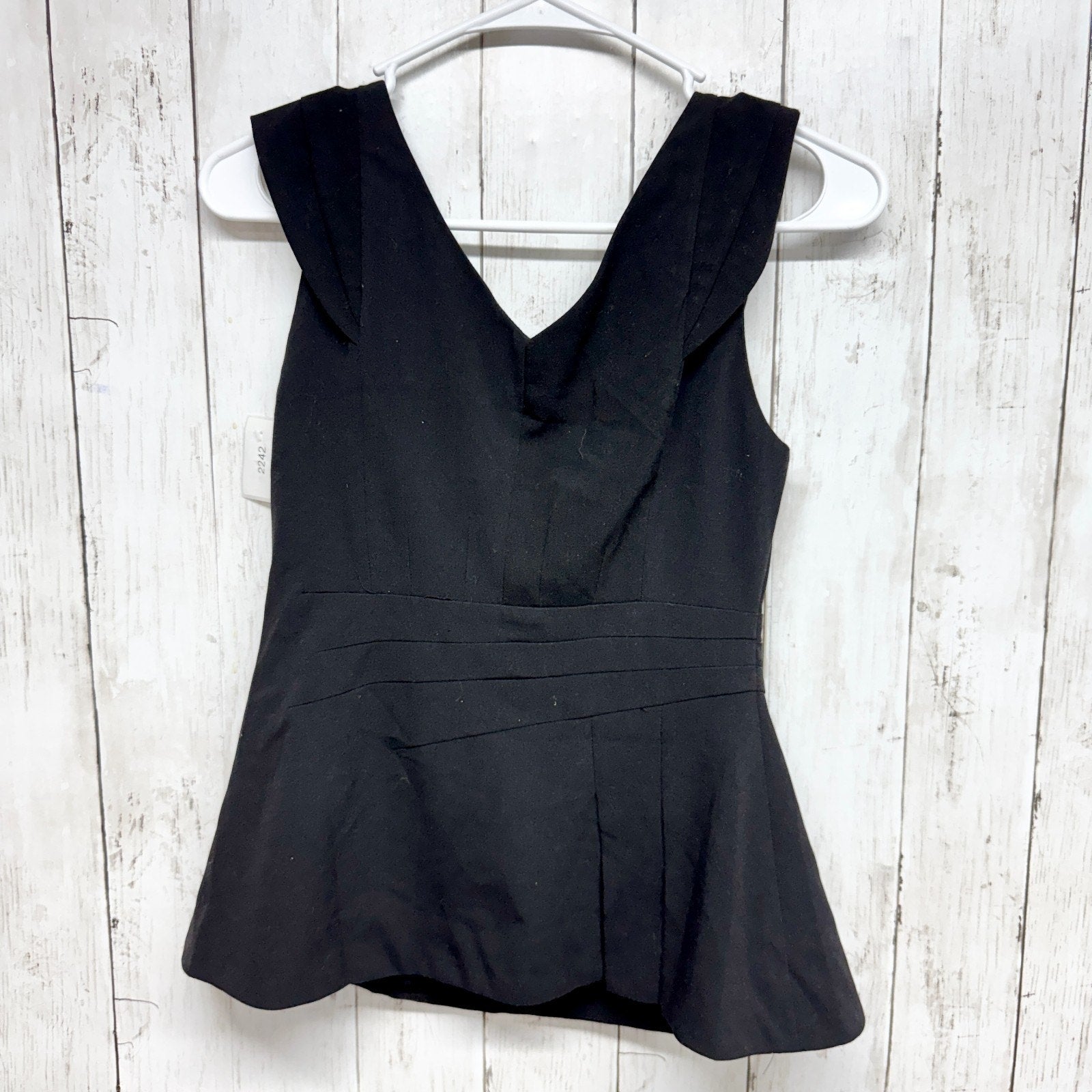 Floreat Top Women Size 2 Black Ruffle Vneck Sleeveless Blouse Ruffle Trim Preppy