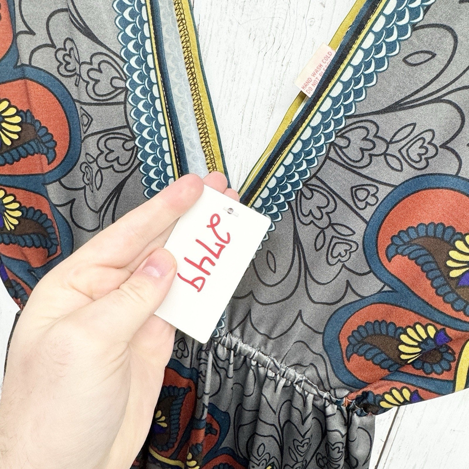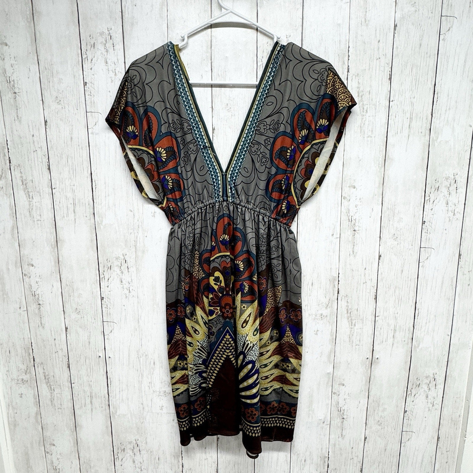 Flying Tomato Dress Women Size Small Multi Pattern V-Neck Cape Short Sleeve Mini