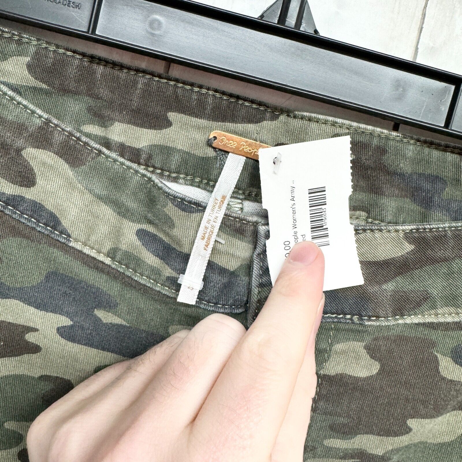 FREE PEOPLE Jeans Women Size 25 Low Rise Skinny Camo Cotton Ankle Button Army stylish, edgy, military-inspired, fitted, casual, rugged, versatile, statement