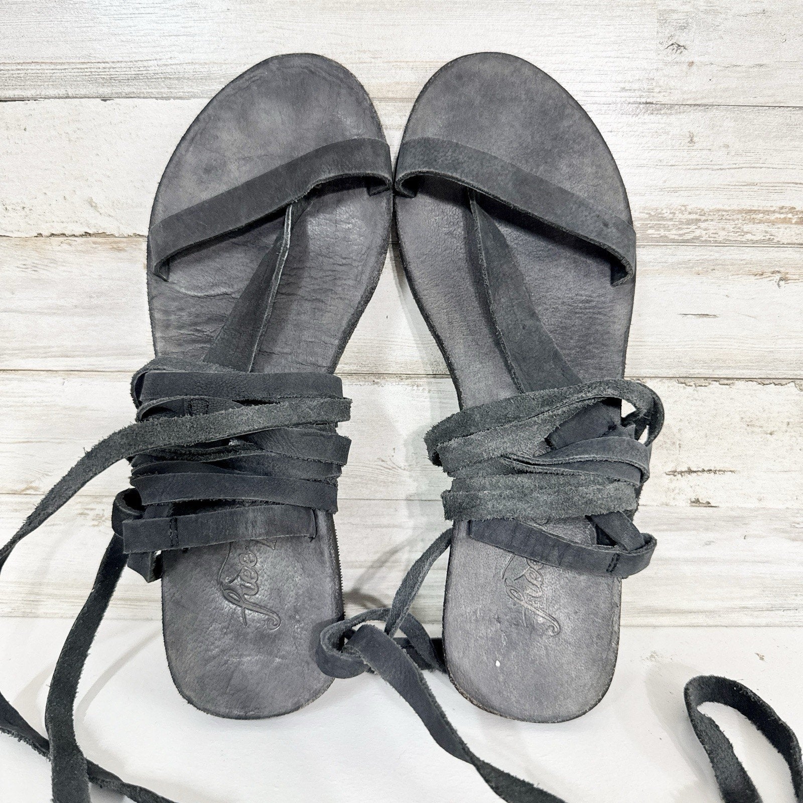 Free People Shoes Women 38 Black Leather Wrap Around Strappy Gladiator Sandal