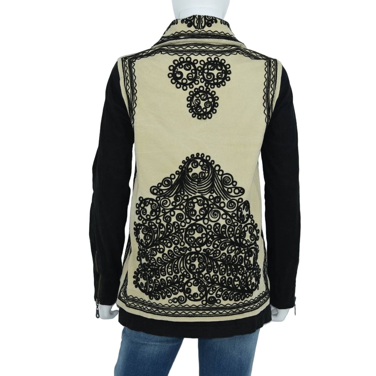 Free People Women's Stitched Quills Black & Cream Embroidered Jacket Size XS