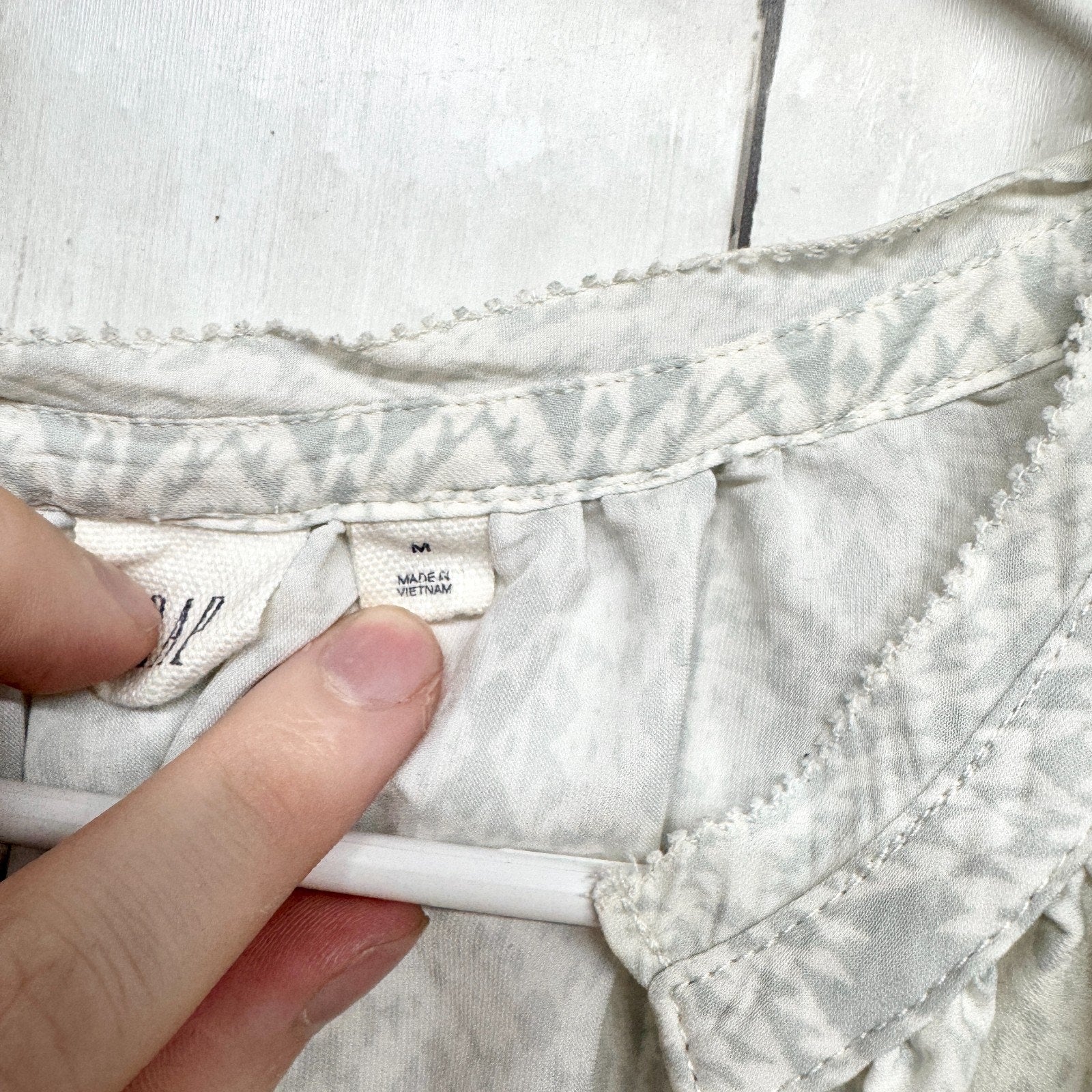 Gap Shirt Women Size Medium Ombre Aztec Pattern Smocked Blouse Trim Detail Boho