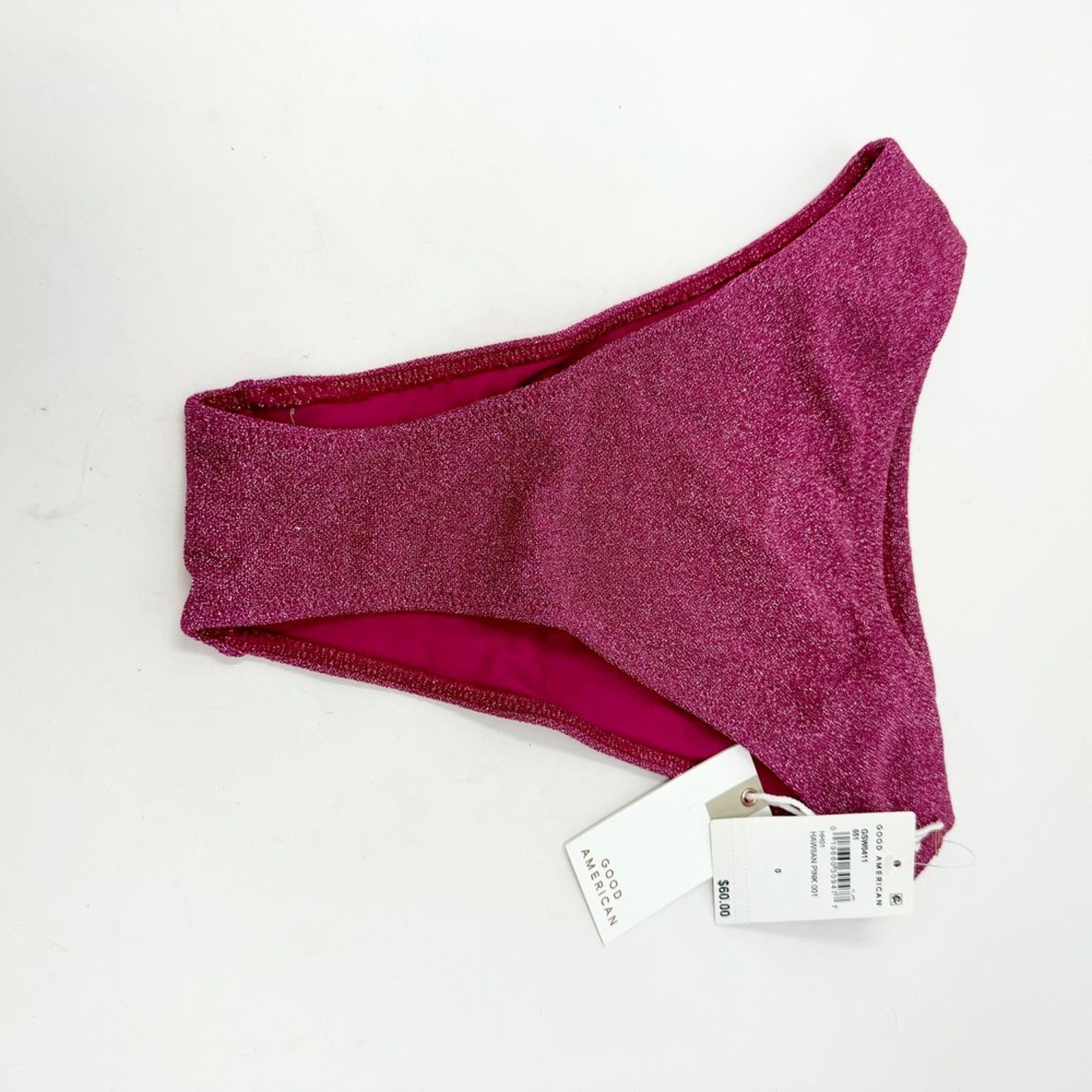 - Elevate your swimwear with these dazzling Pink Sparkle Good Waist Cheeky Swim Bottoms by Good American in a size 0 (XS).