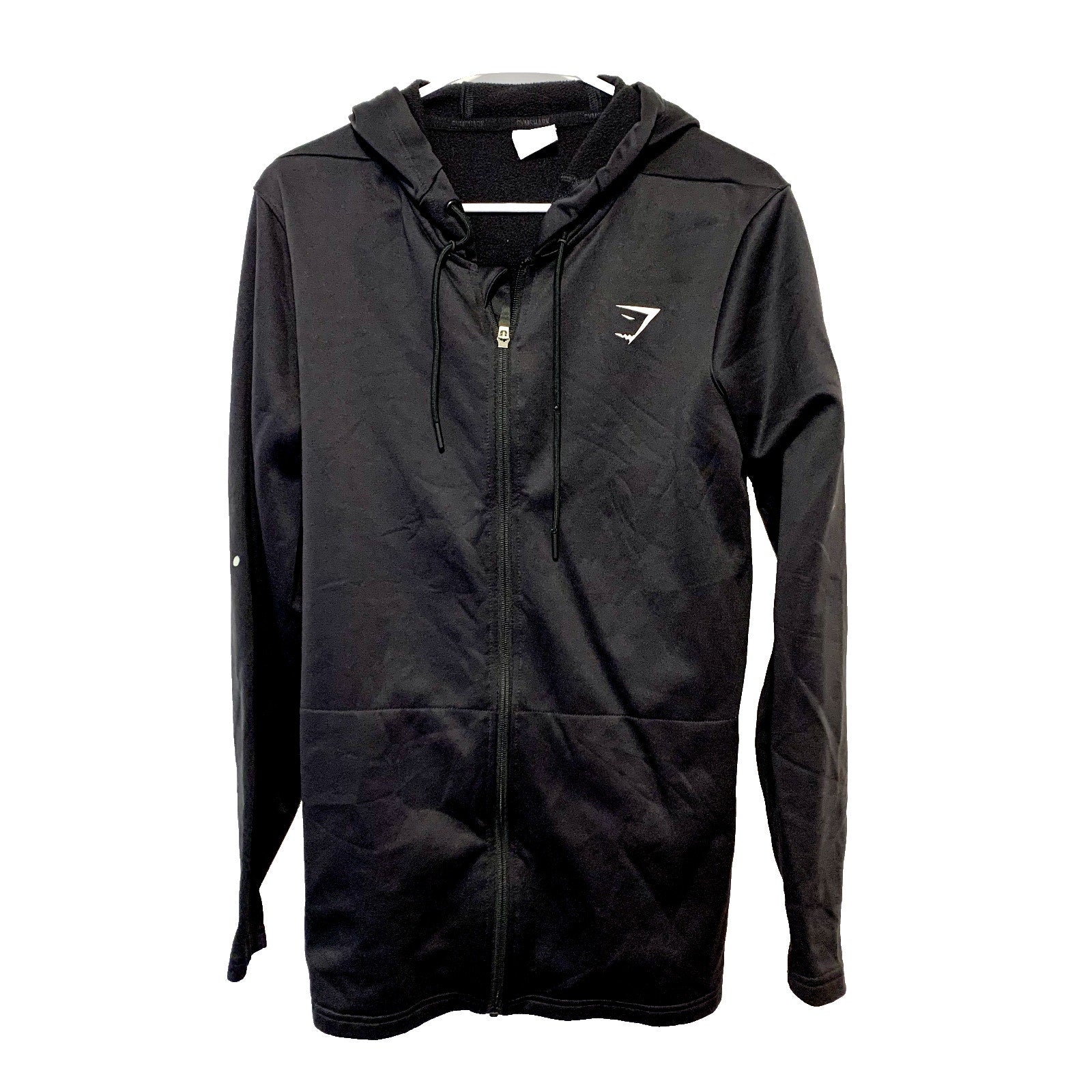GYMSHARK Sweater Mens Size Medium Zip Up Black Hooded Logo Athletic Cotton