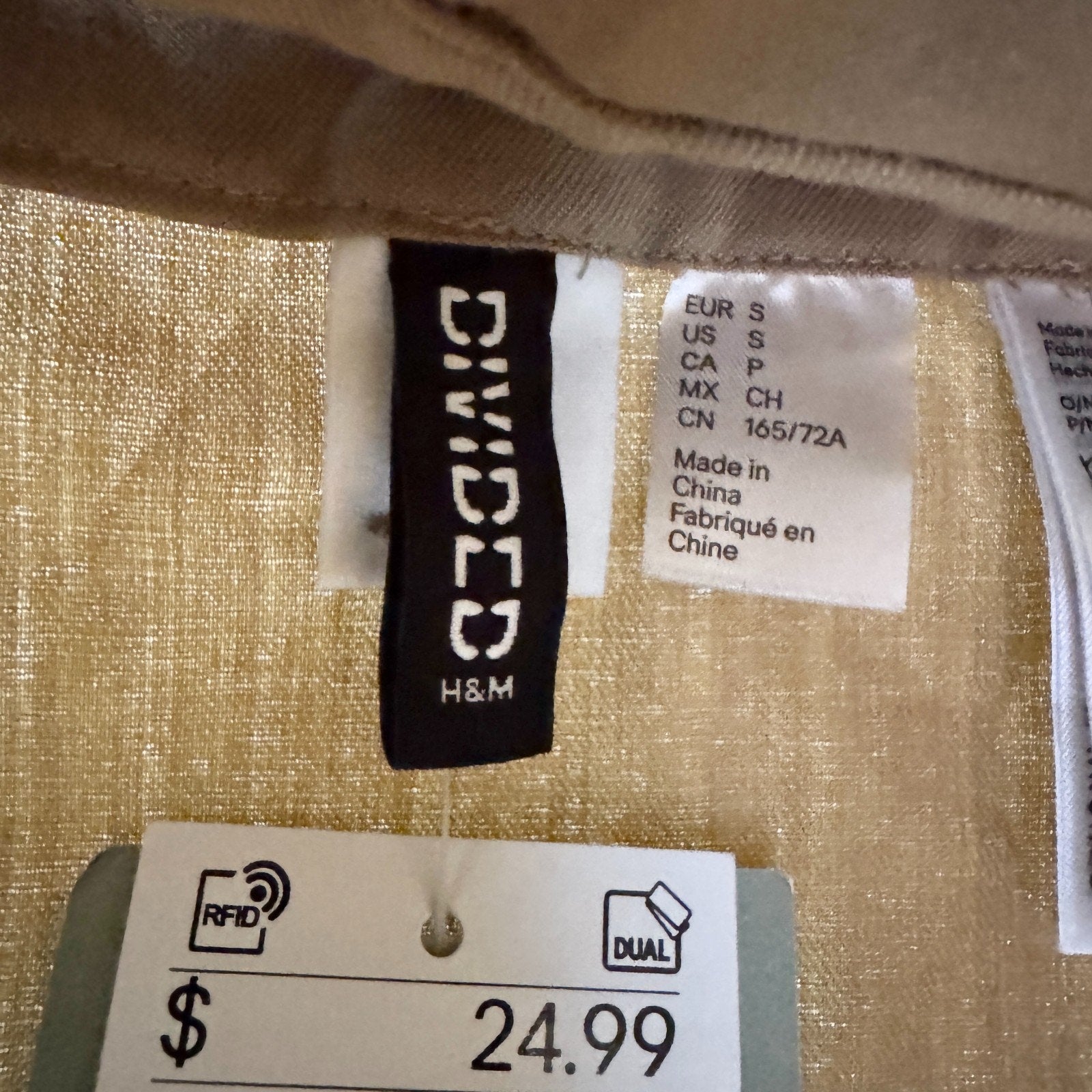 H&M Divided Skirt Women Size Small Tan Linen Mini Pockets Business Preppy