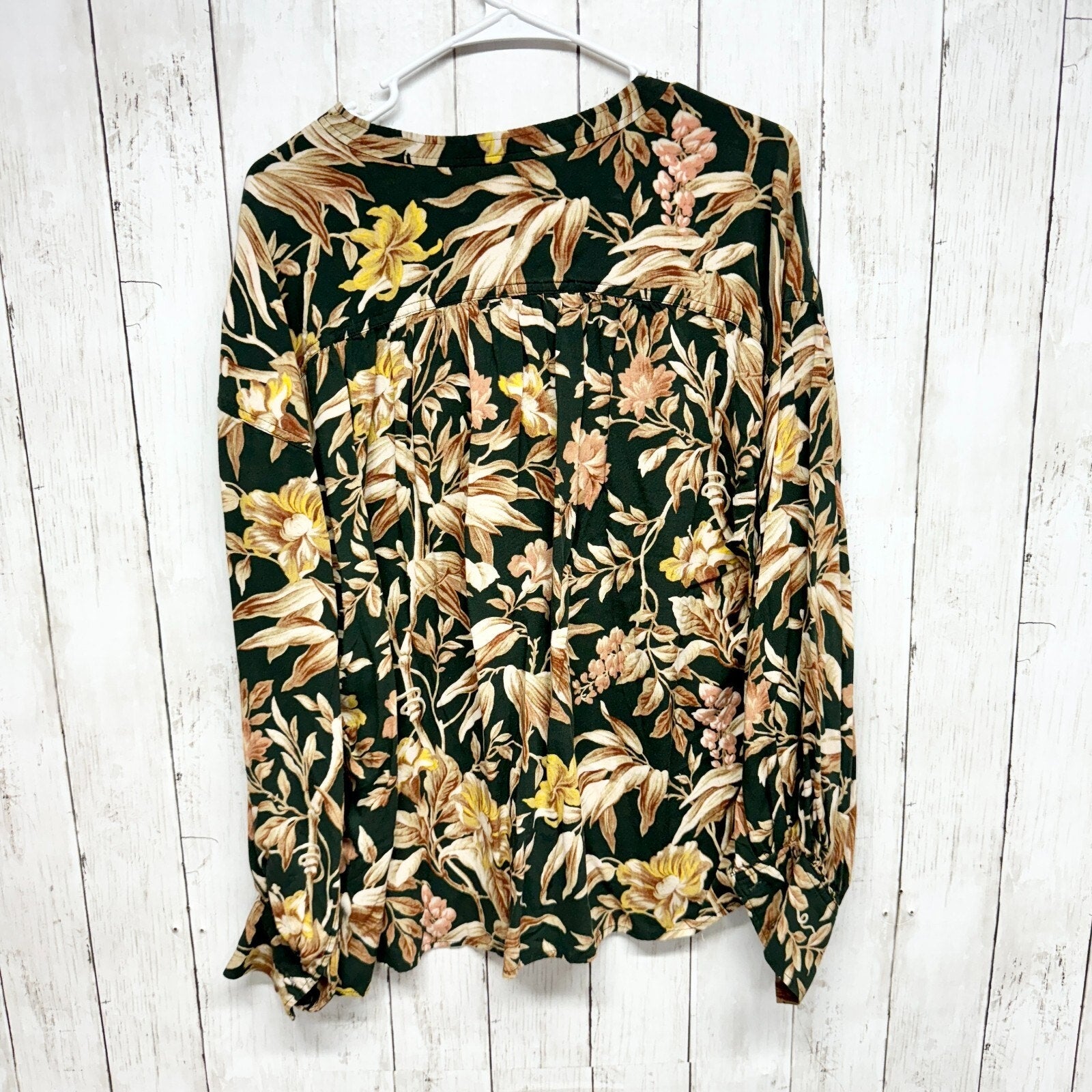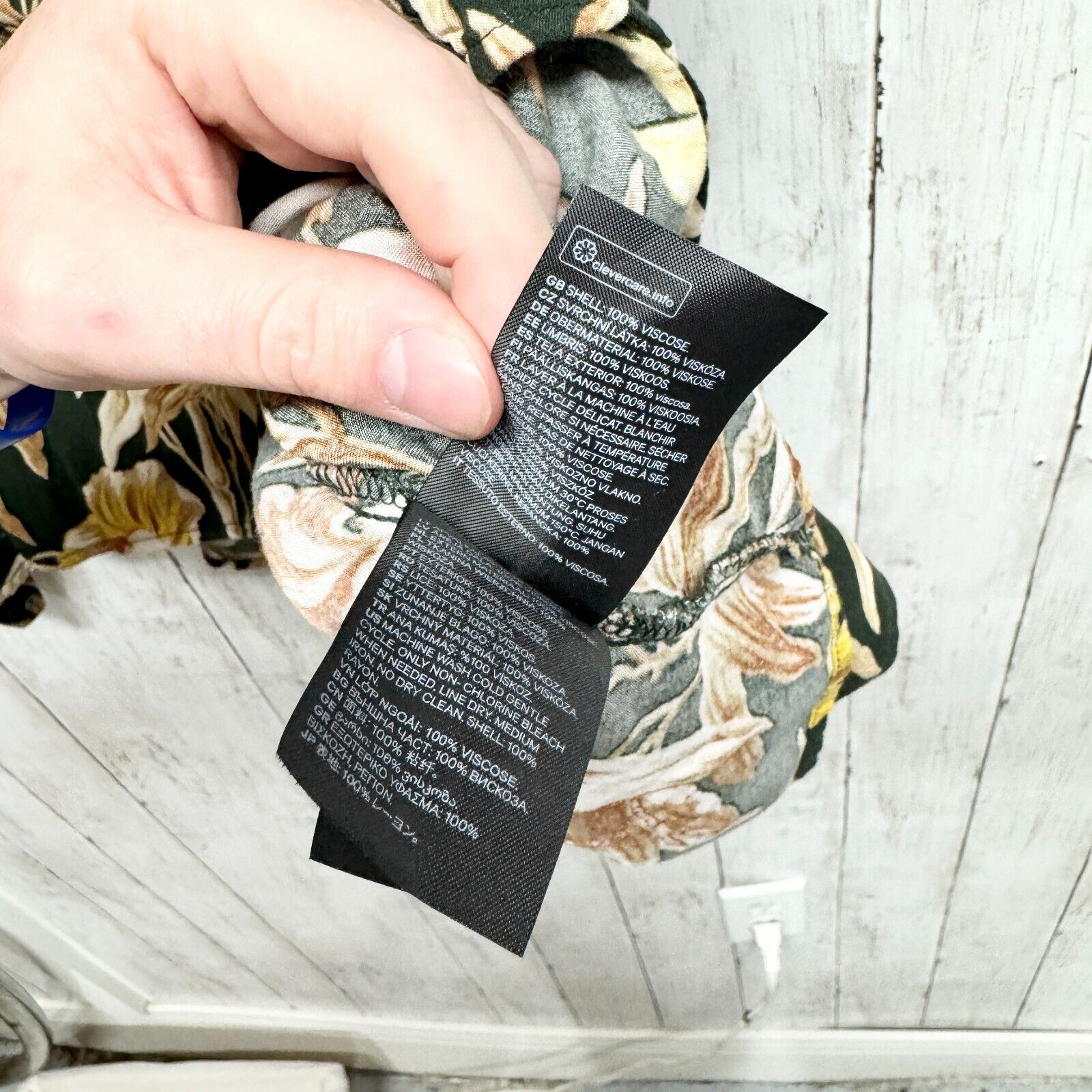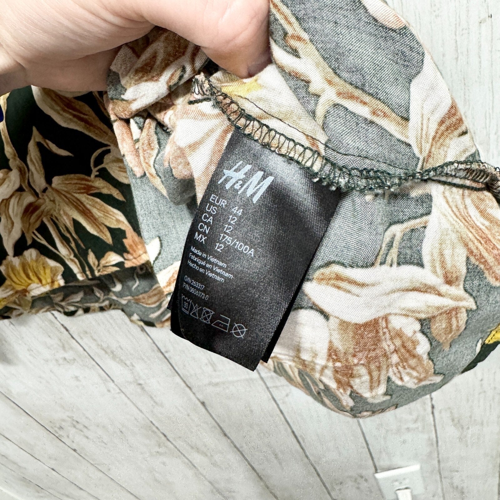 H&M Shirt Women Size 12 Button Down Green Floral Hunter Green Polyester casual