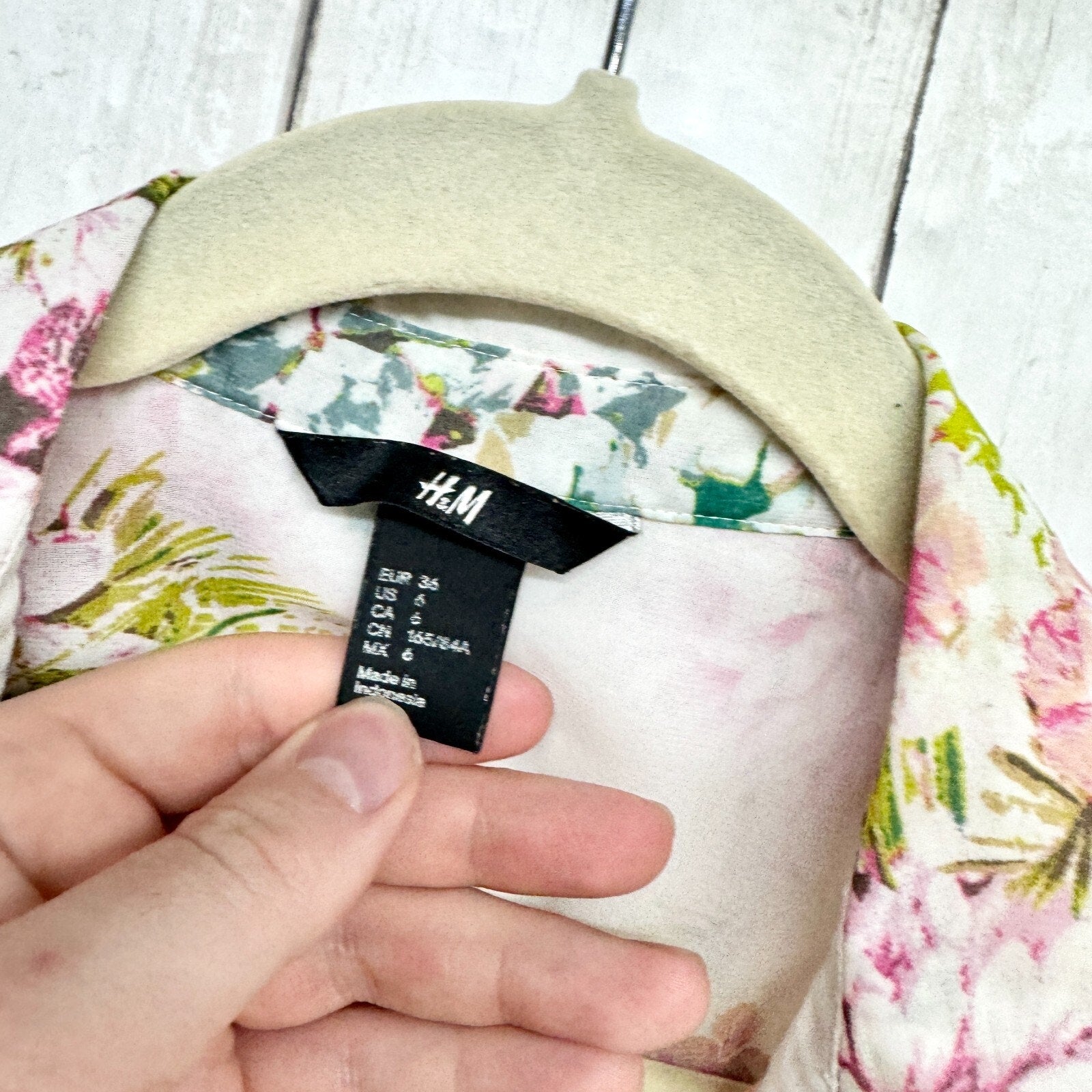 H&M Shirt Women Size 6 Tank Blouse Sleeveless Floral Button-Down Hi-Low Sheer
