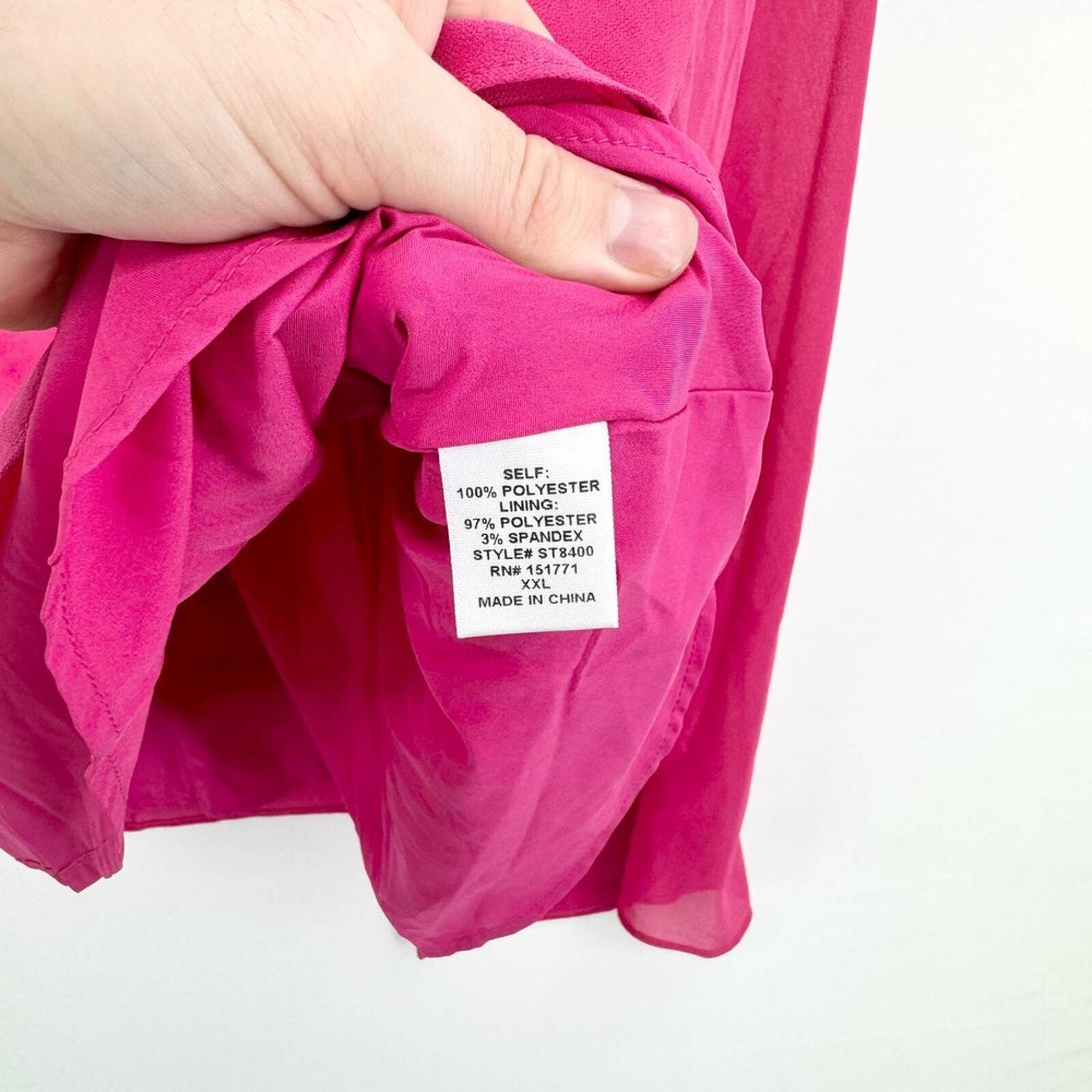 Heatherly Hot Pink Y2K V Neck Flared Sleeve Semi Sheer NWT Blouse Size XXL
