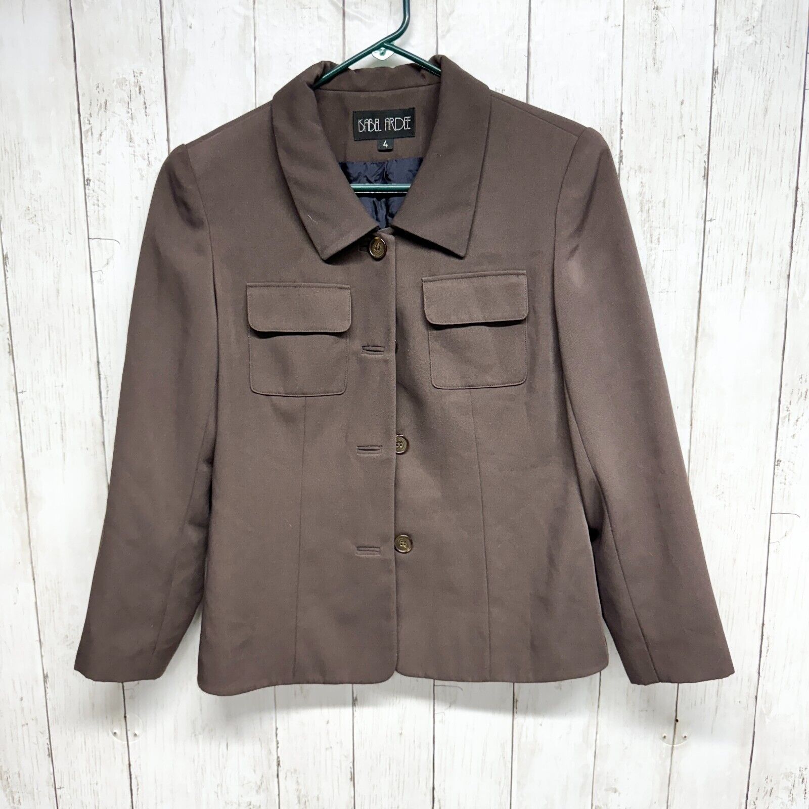 ISABEL ARDEE Blazer Women Size 4 Single Breasted Brown Collared Pocket Slim Fit