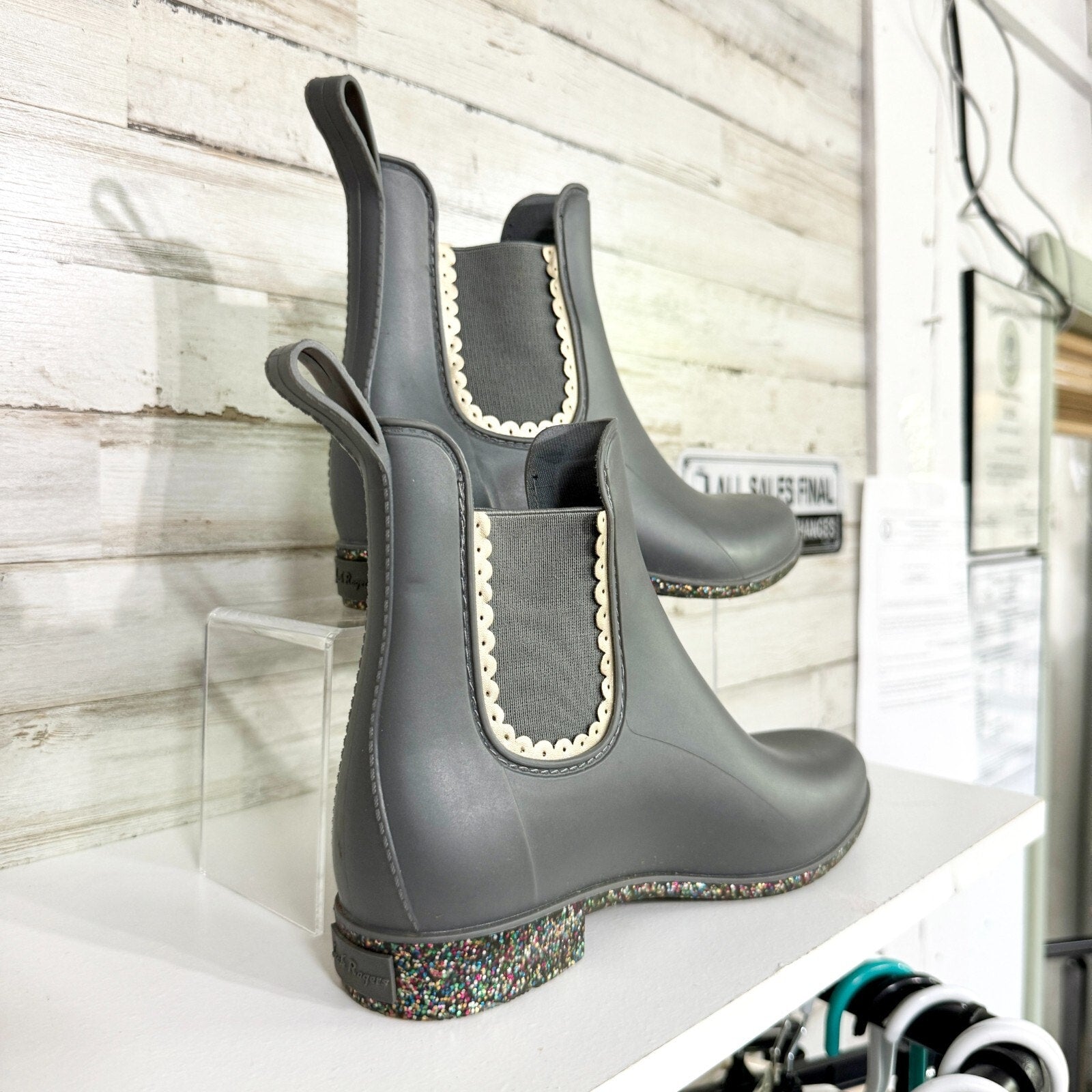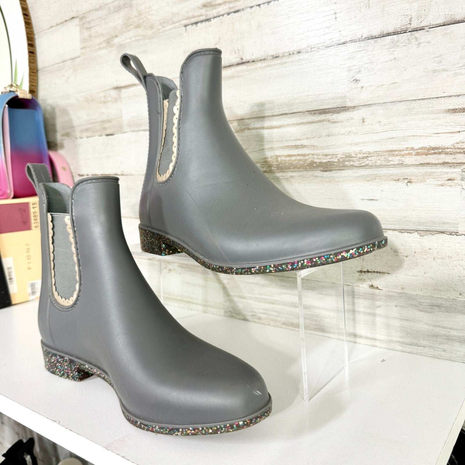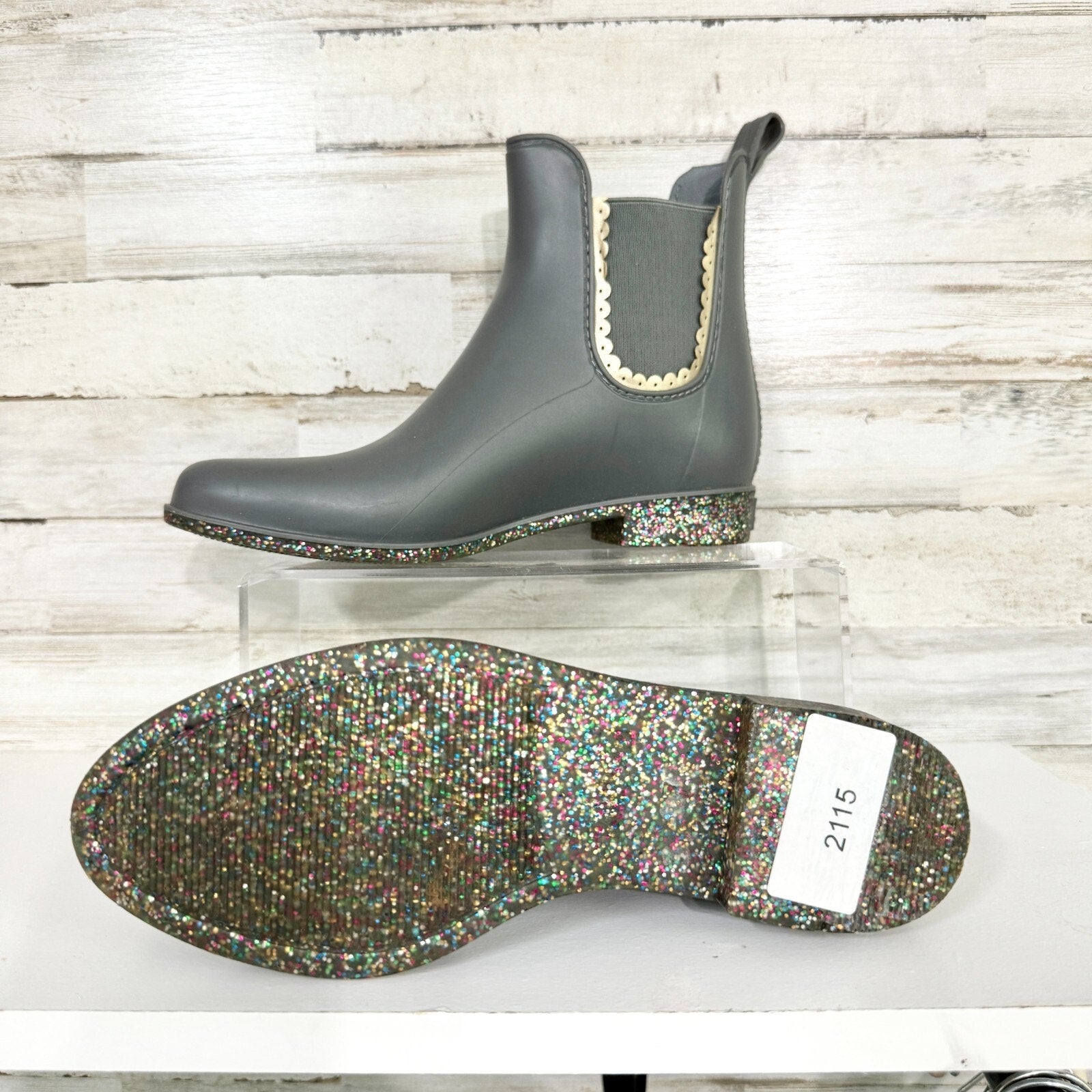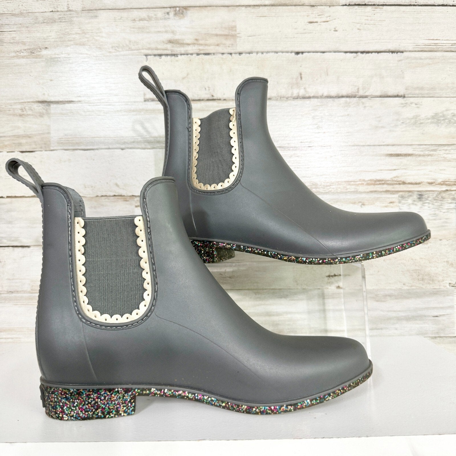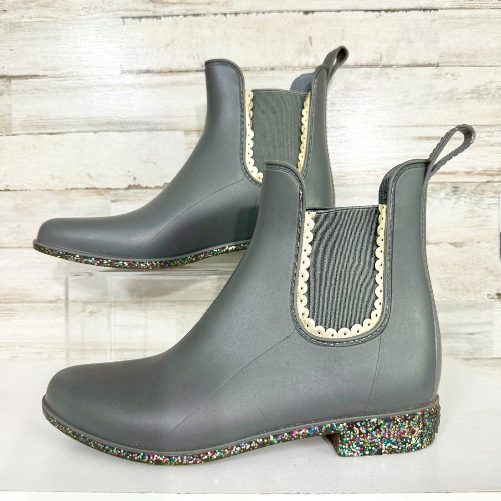 Jack Rogers Boot Women's Size 7 Sallie Rainboot Scallop Detail Glitter Outsole
