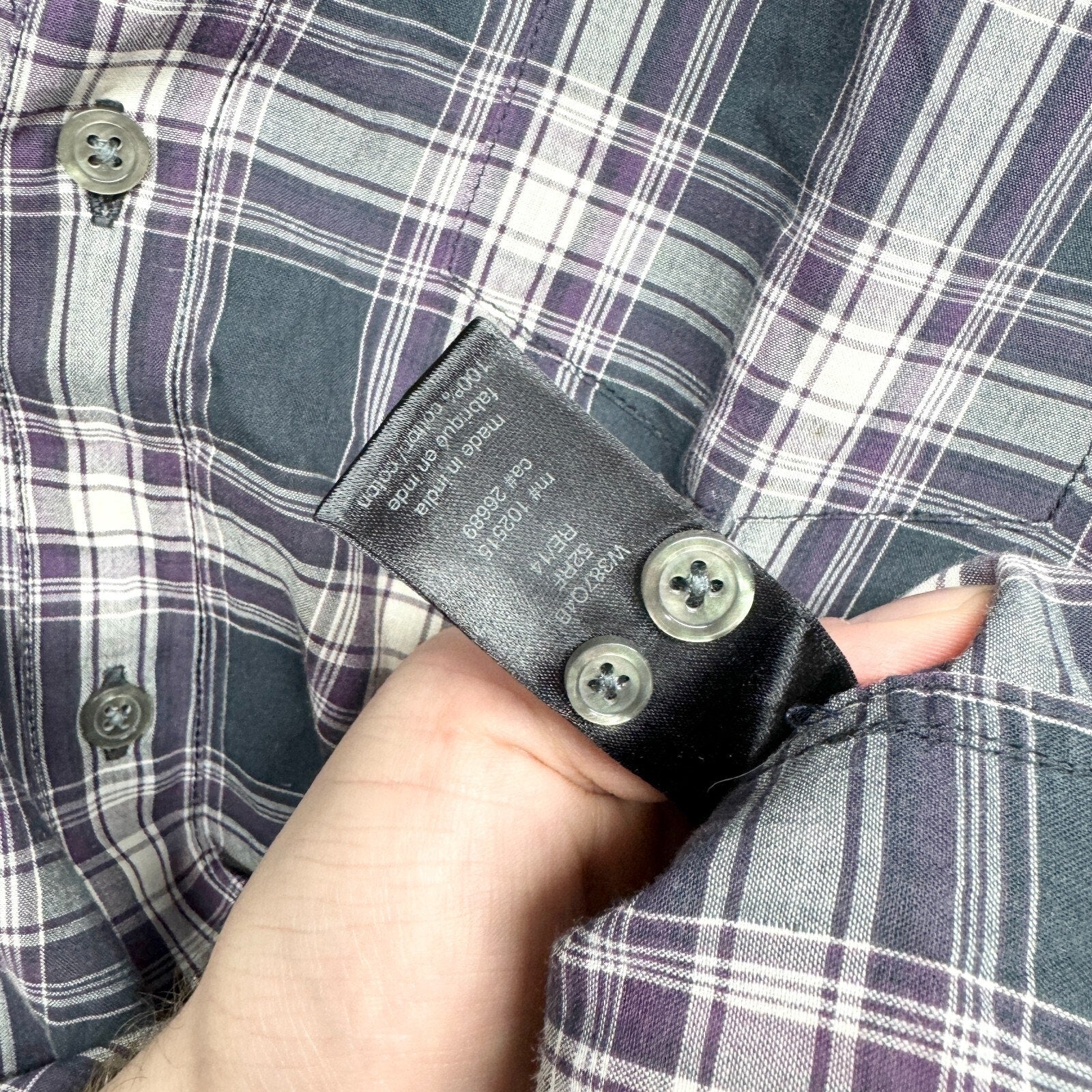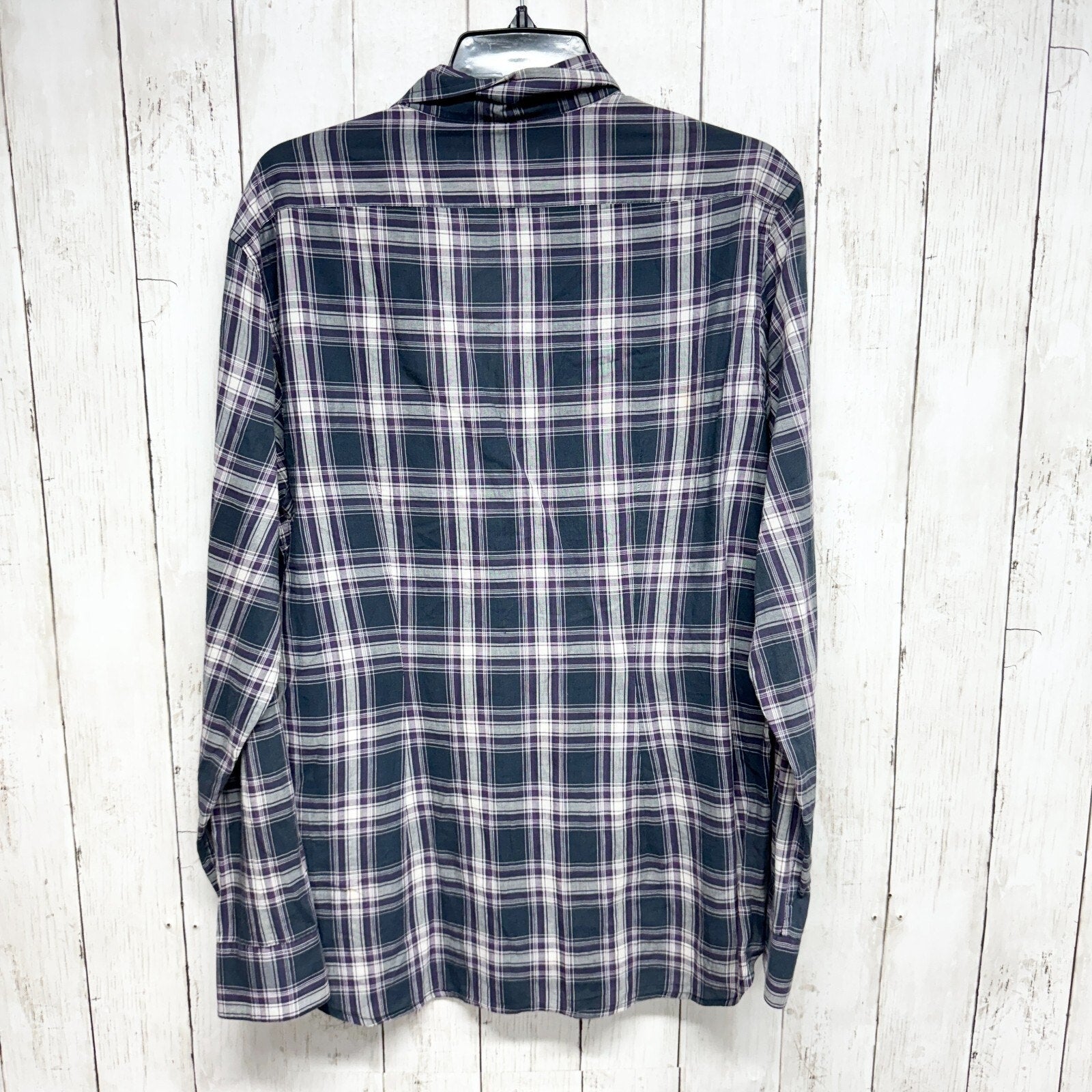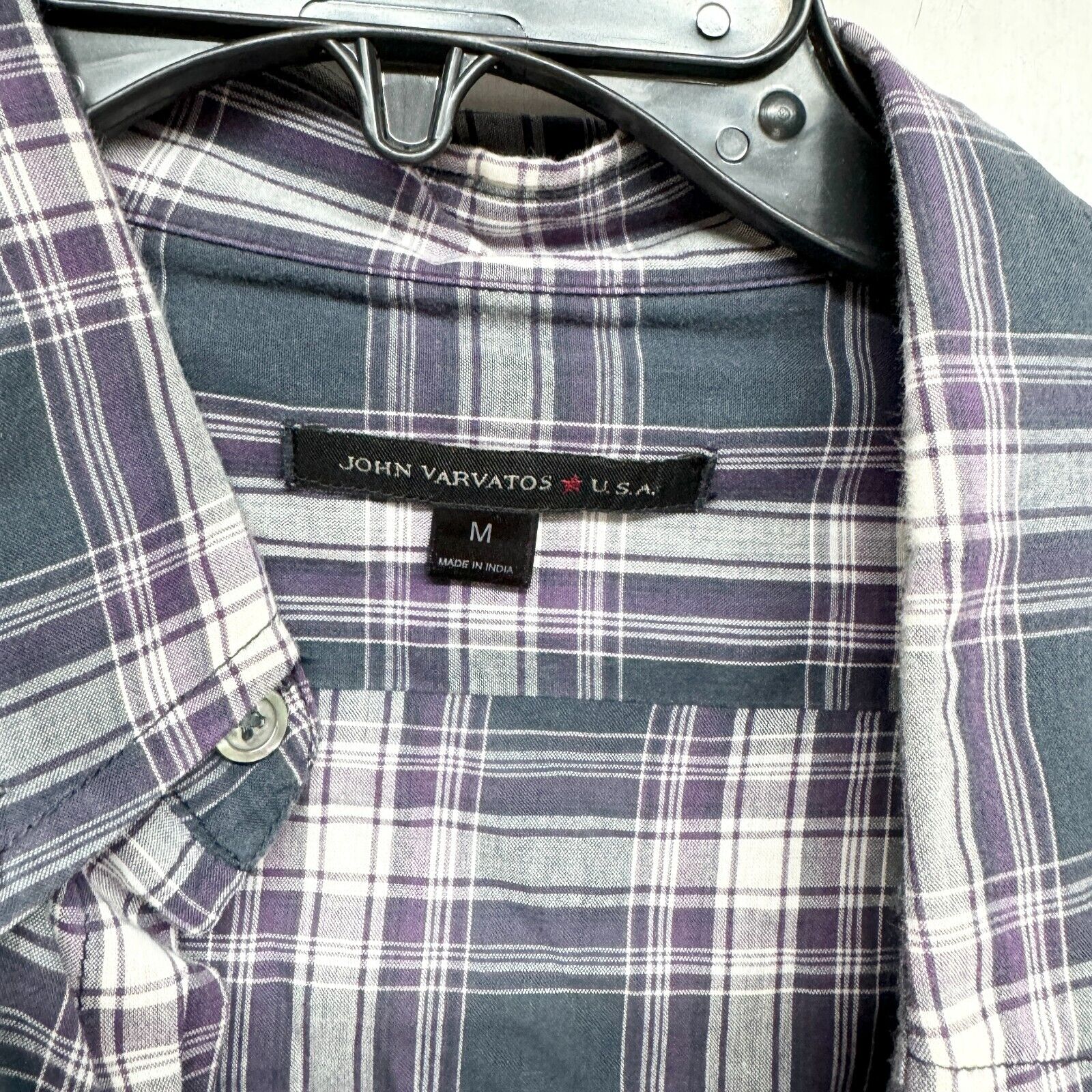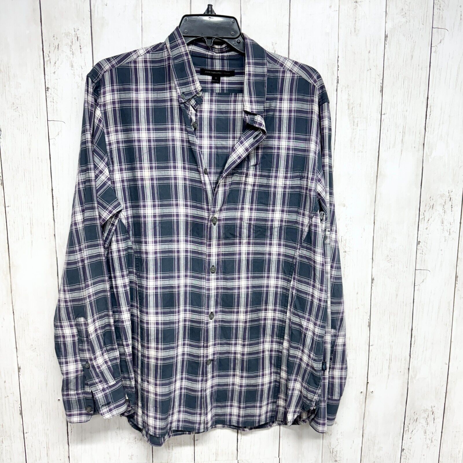 John Varvatos Shirt Men Medium Blue Plaid Button Up Long Sleeve Cotton Star USA
