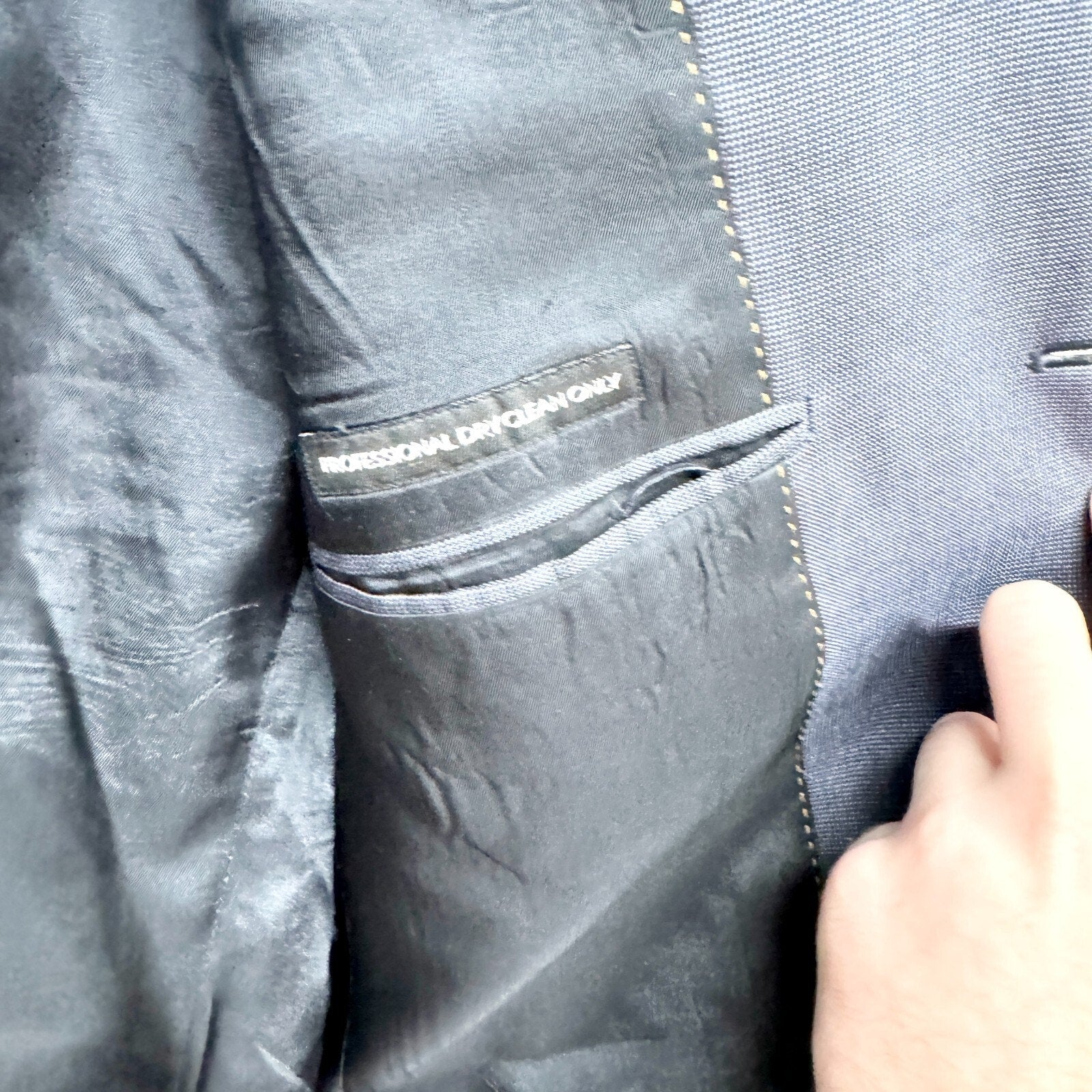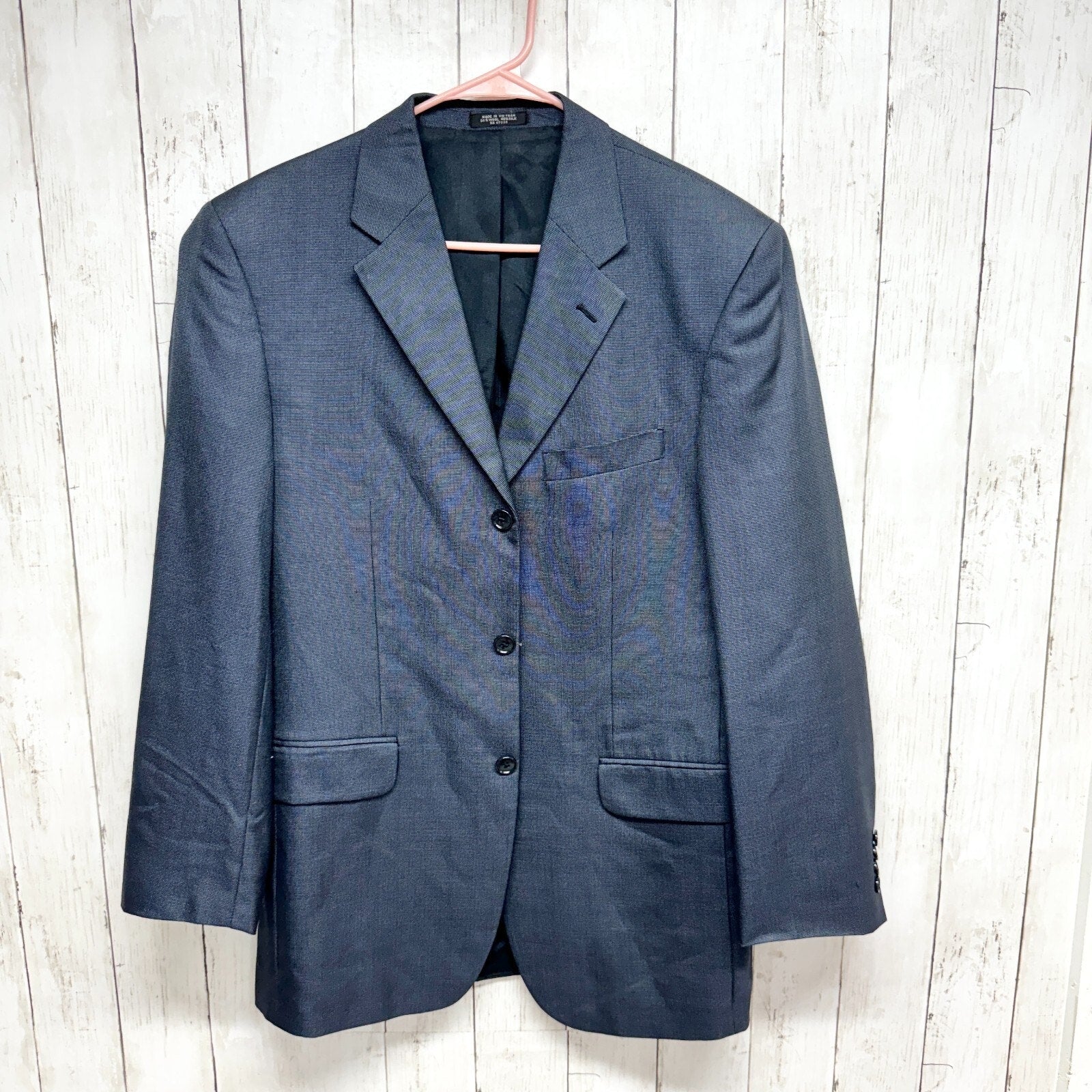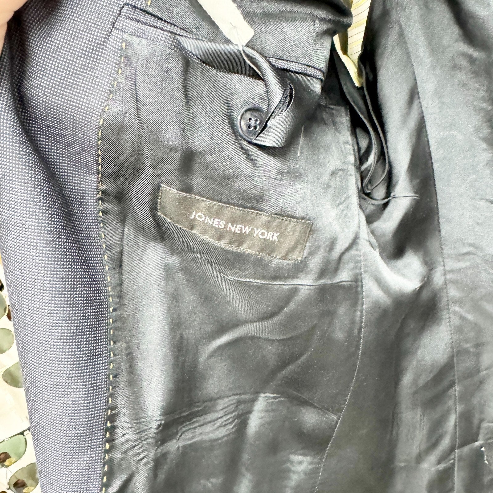 Jones New York Blazer Men Sz 40R Navy Blue Triple Button Wool Silk Chest Pocket