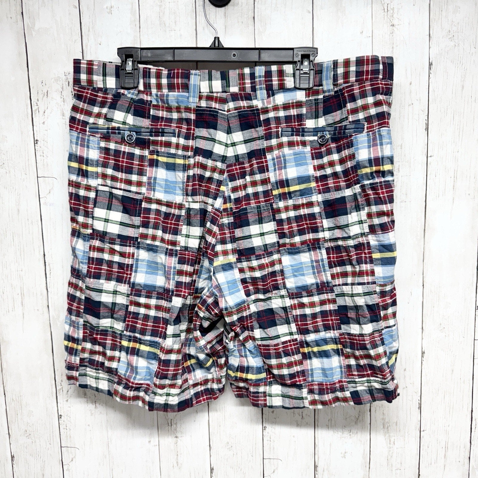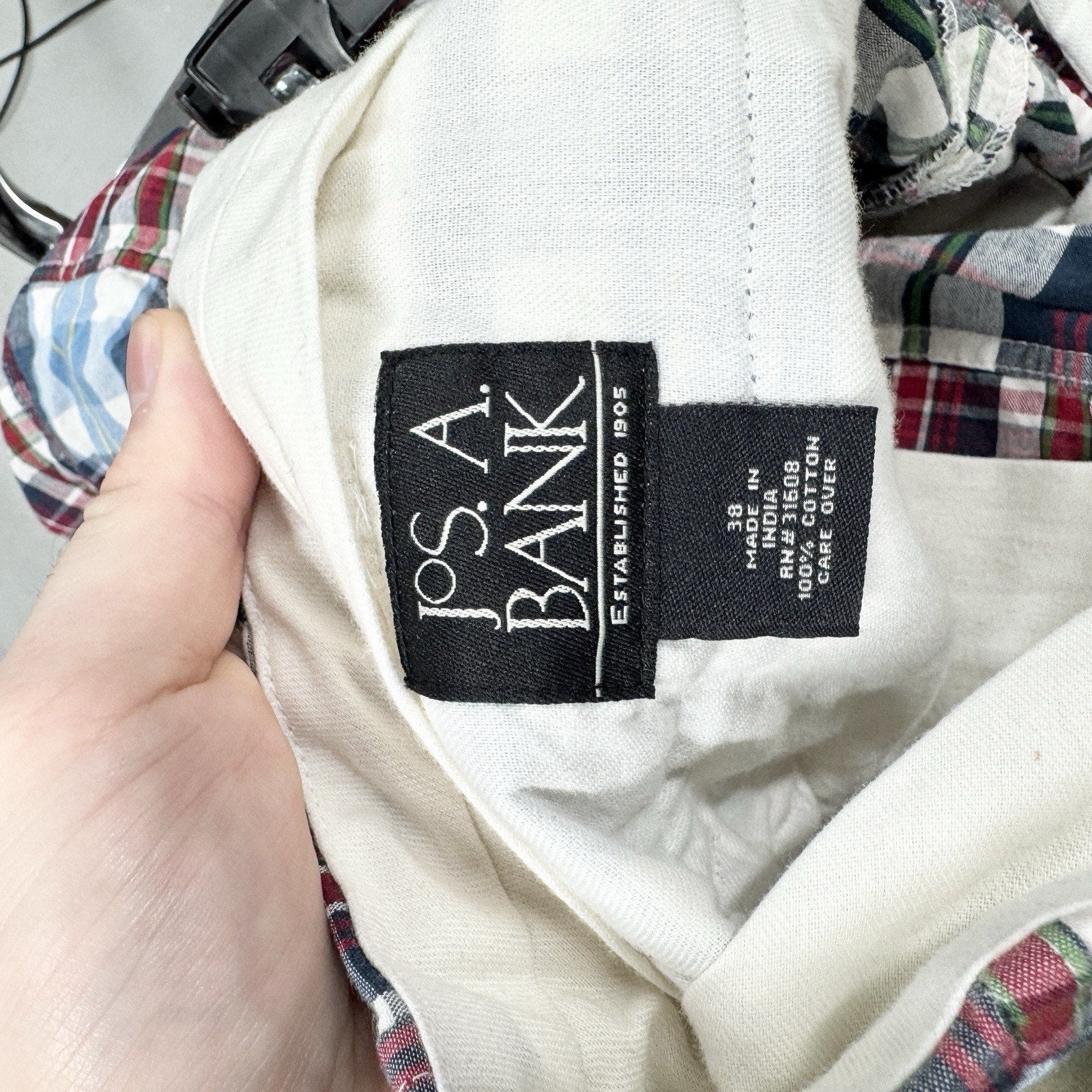Jos. A. Bank Men Short Size 30 Madras Plaid Patchwork Cotton Chino Shorts Preppy