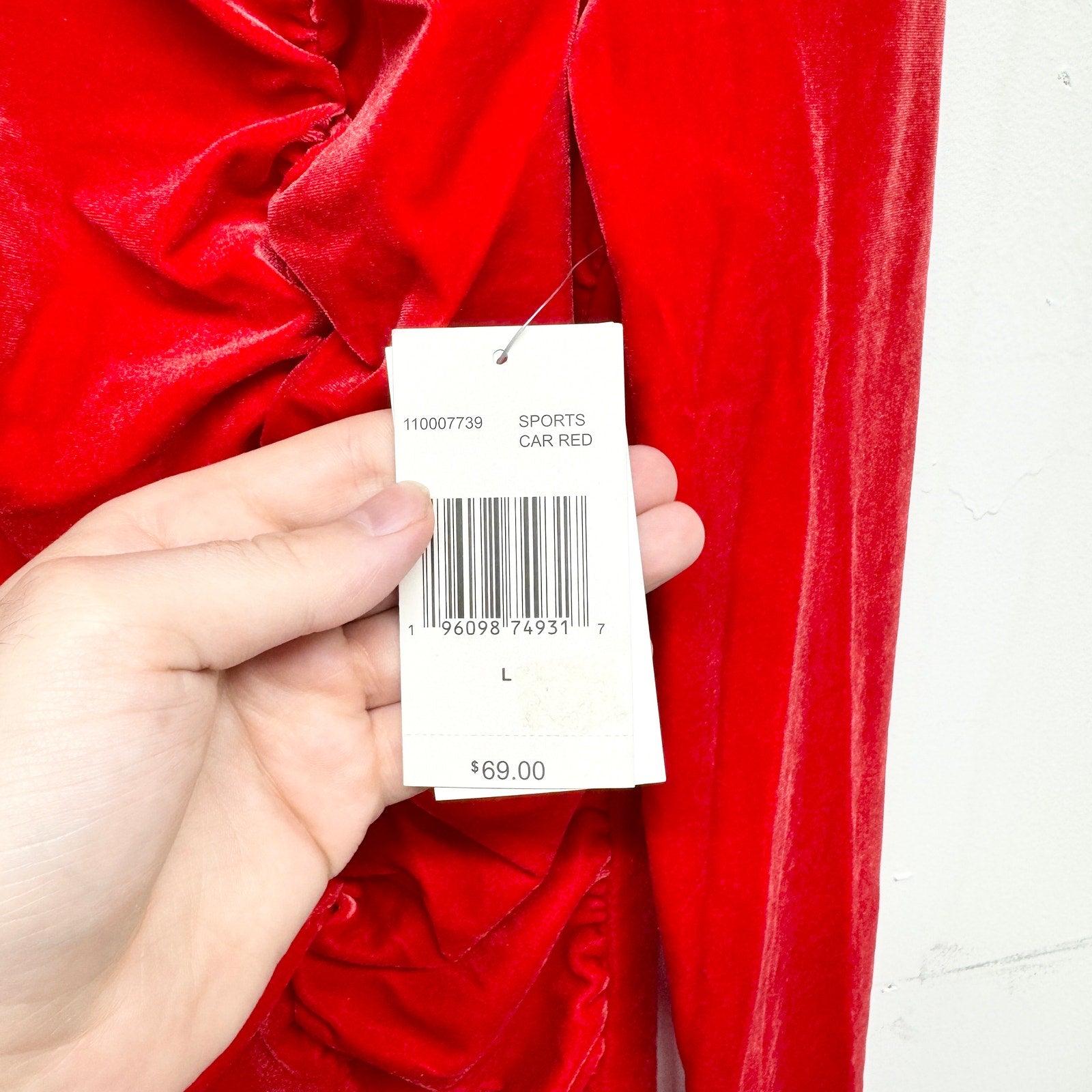 Juicy Couture Women Red Velvet Rutched Mini Dress Size Large
