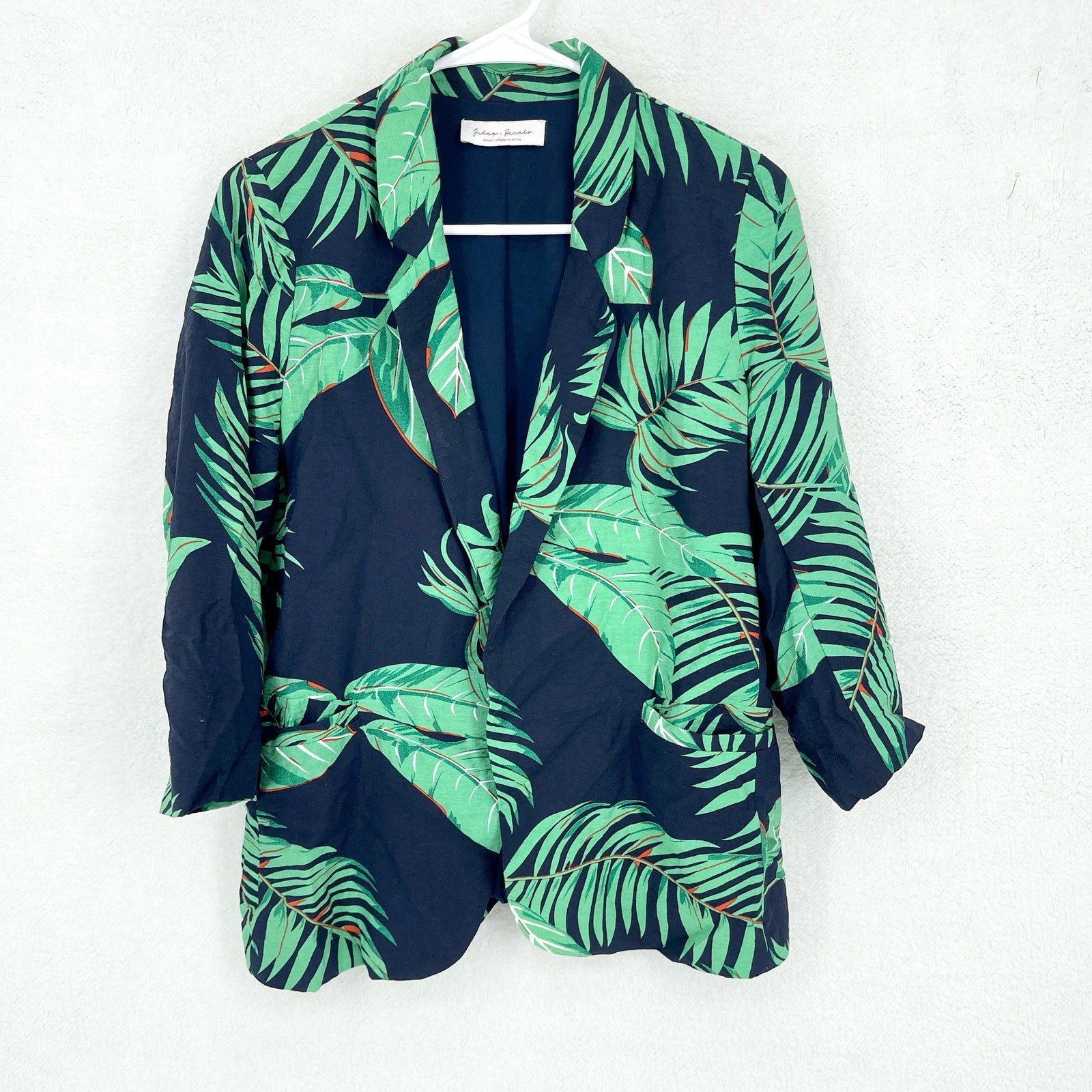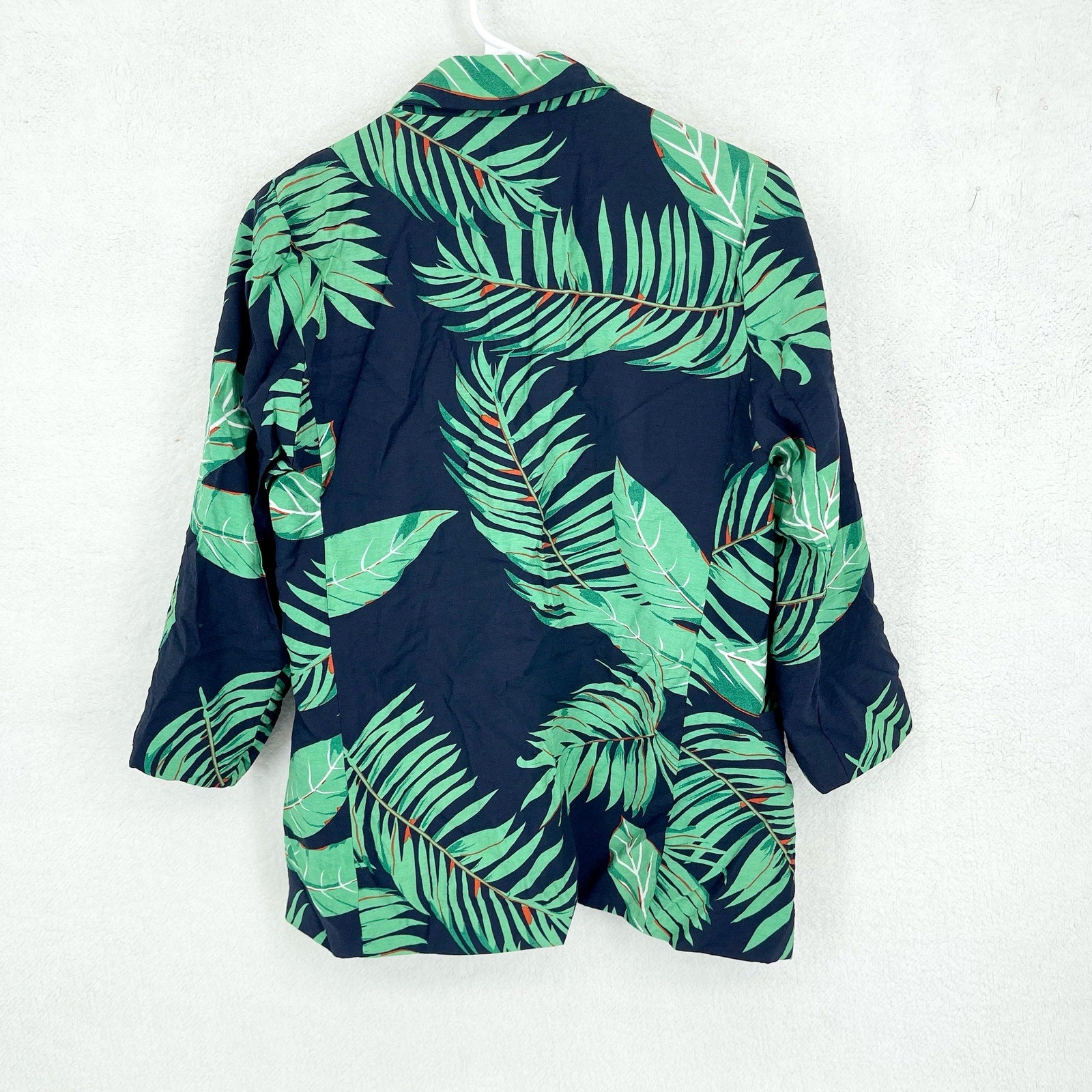 Julep and Petals Women's Lightweight Tropical Leaf Boyfriend Blazer 3/4 Sleeve S