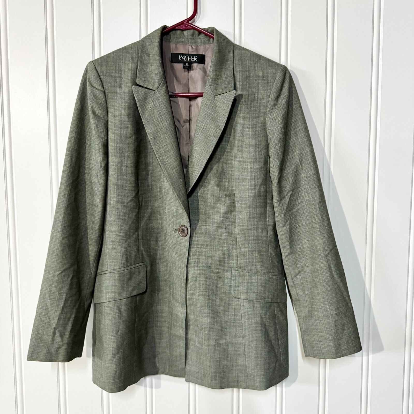 KASPER Blazer Women Size 12 Grey Single Breasted Padded Shoulder Lined Pockets Elegant, Classic, Sophisticated, Timeless, Stylish, Tailored, Comfortable, Professional, Versatile, Polished, Feminine, Structured, Chic, Durable, Flattering, High-Quality, Modern, Formal, Statement Piece