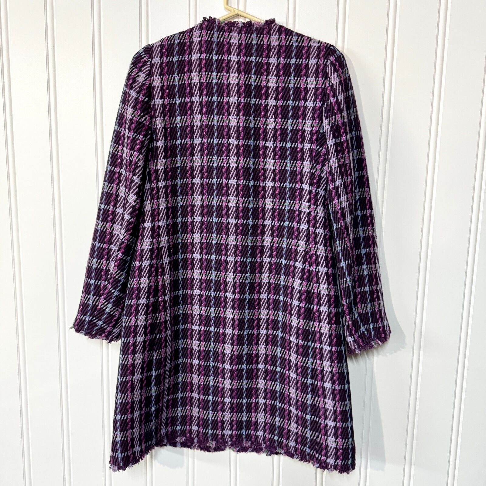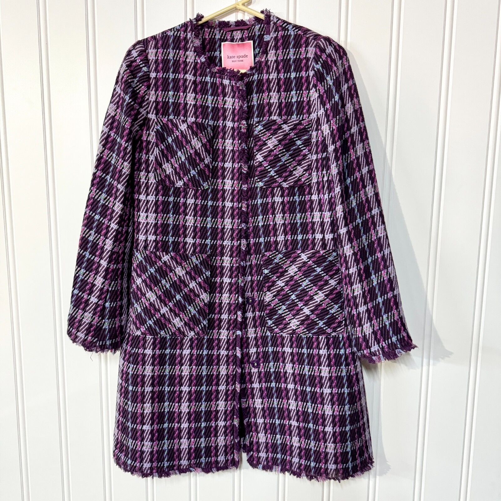 KATE SPADE Coat Women Size 2 Plaid Button Down Tweed Overcoat Plum Long Sleeve