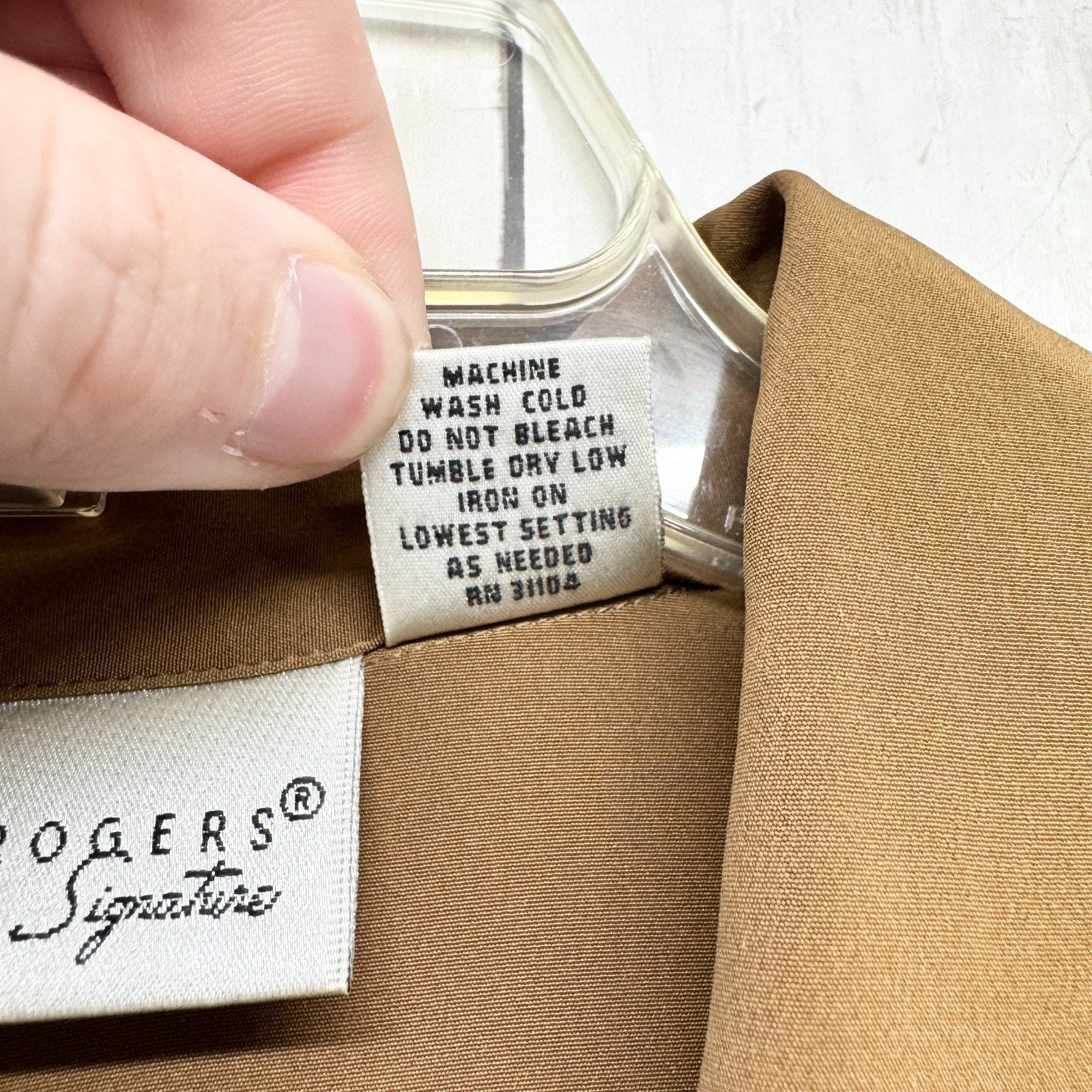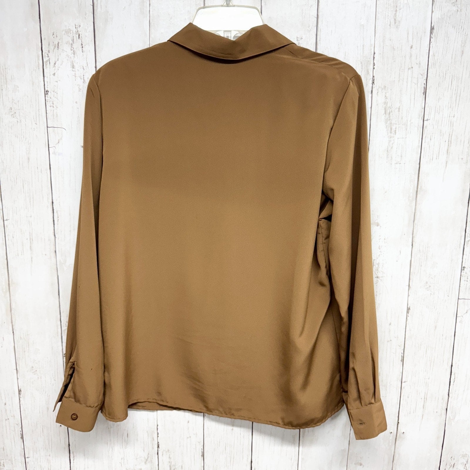 Kim Rogers Blouse Women Size Medium Brown Collared Long Sleeve Button Down Shirt