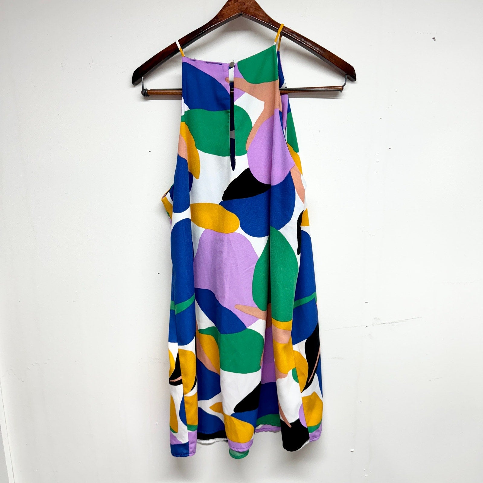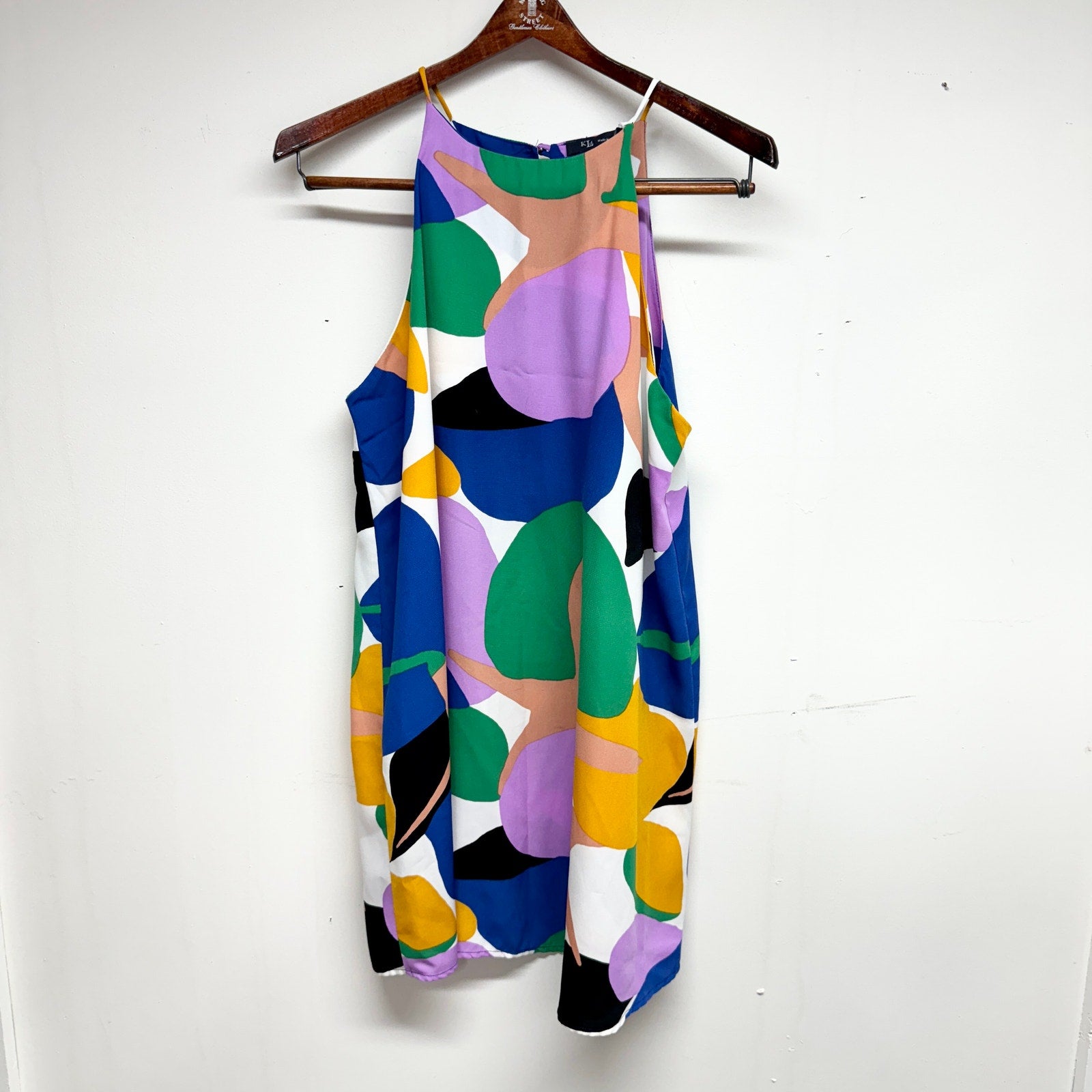 KLD Women Multicolored Abstract Retro Sleeveless Mini Dress Size Large
