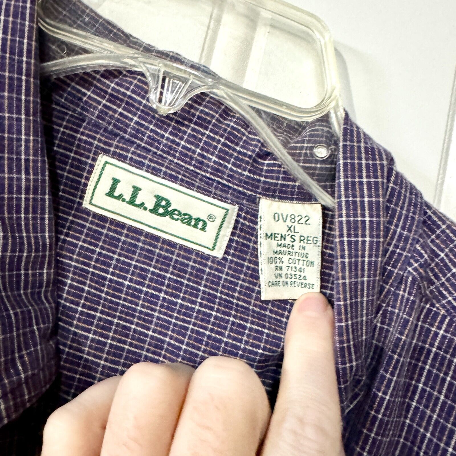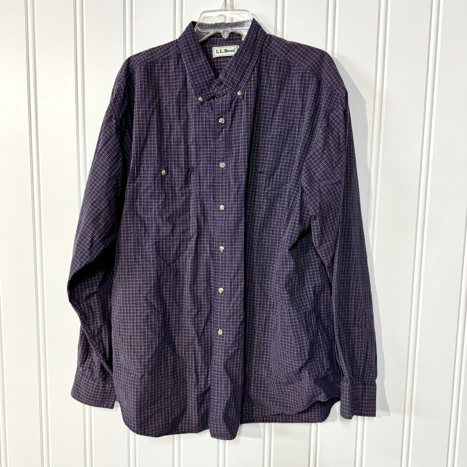 L.L. Bean Button Down Mens Sz XL Purple Plaid Casual Outdoor 100% Cotton Stripe