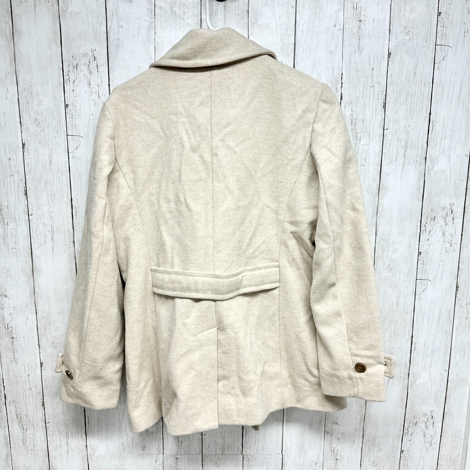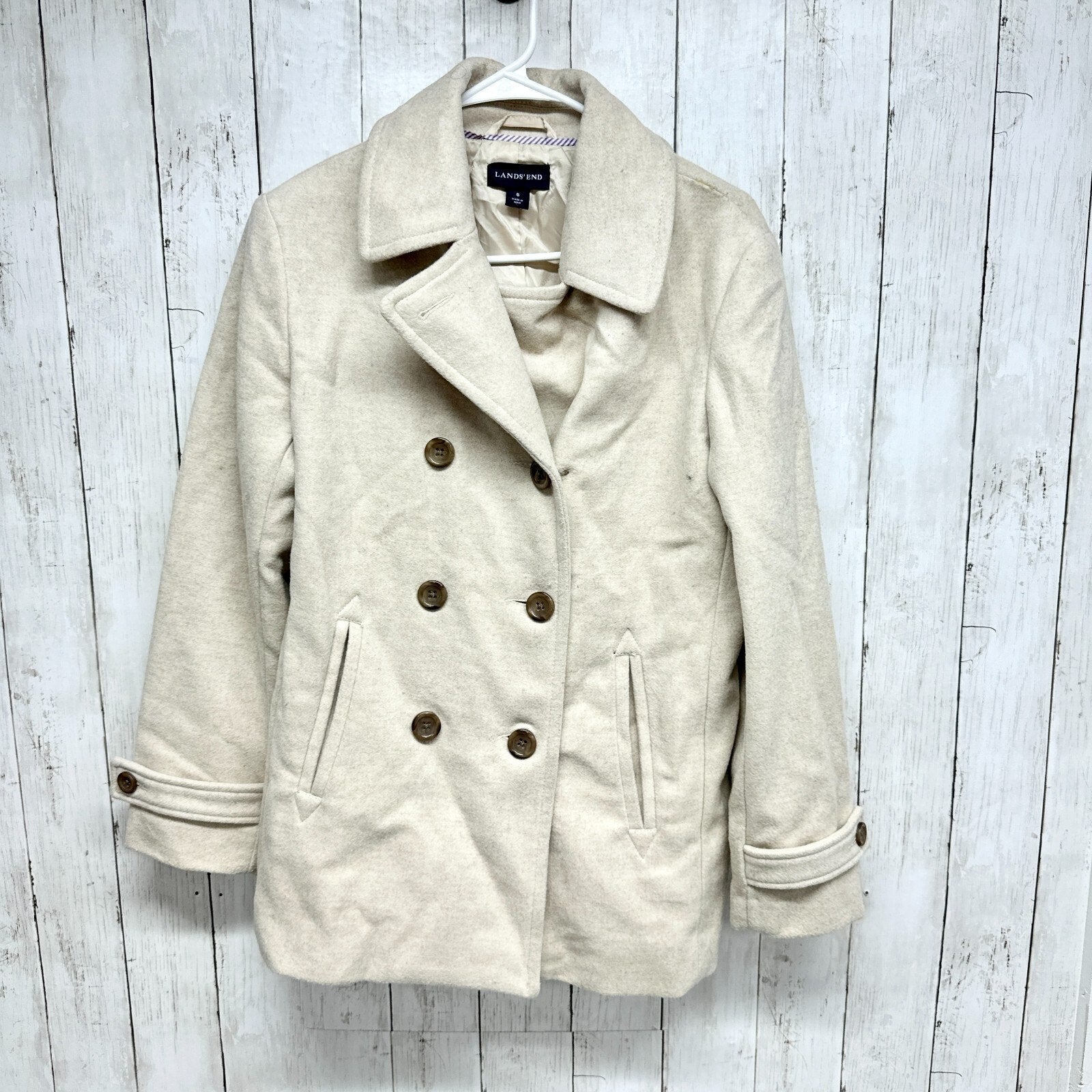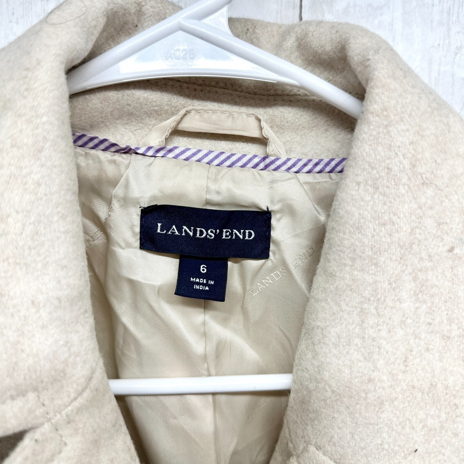 Lands' End Coat Women Sz 6 Cream Wool Double Breasted Peacoat Front Pockets