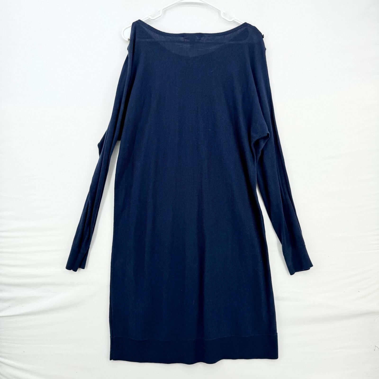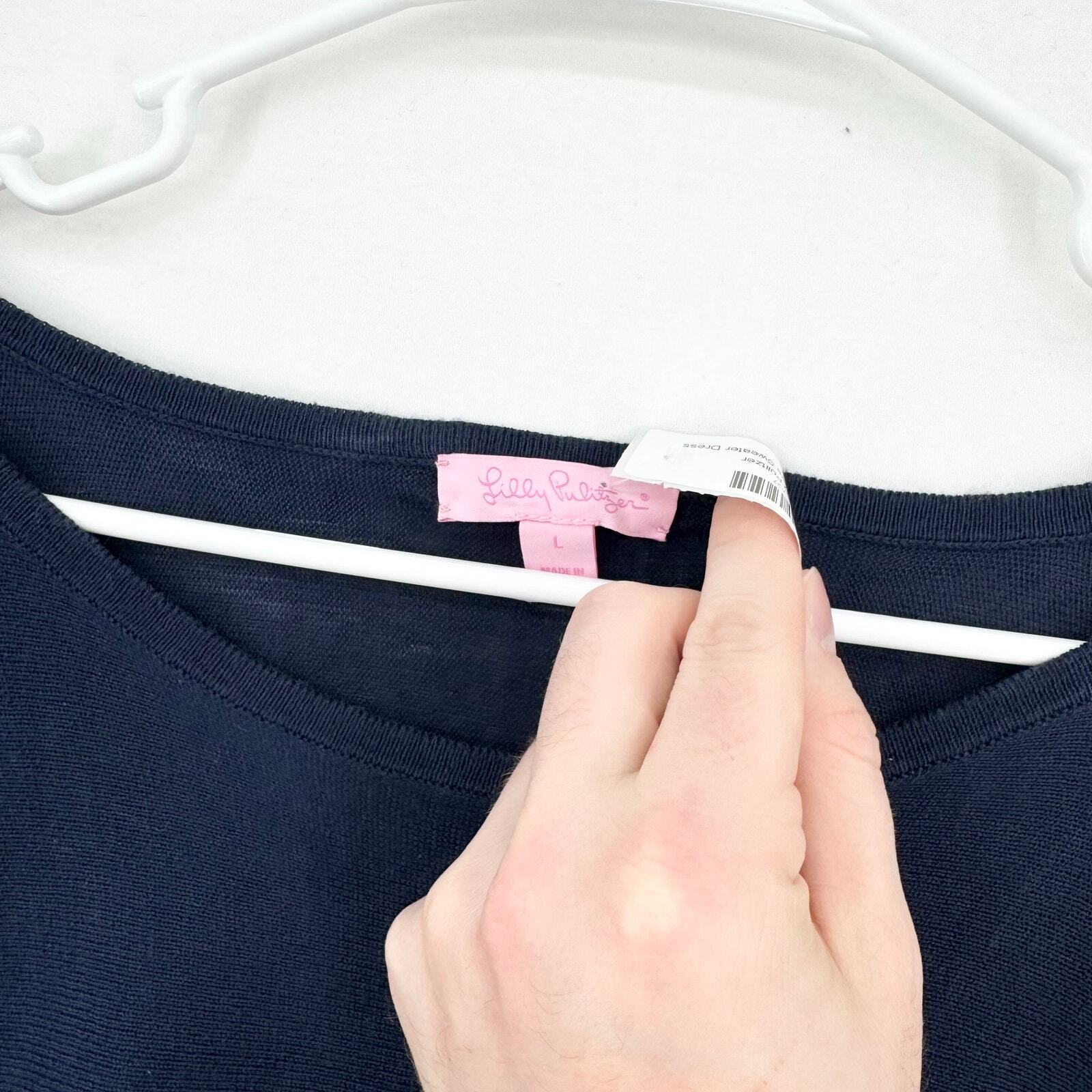 Lilly Pulitzer Midi Navy Blue Long Sleeve Wide Neck Dress Women Size Large