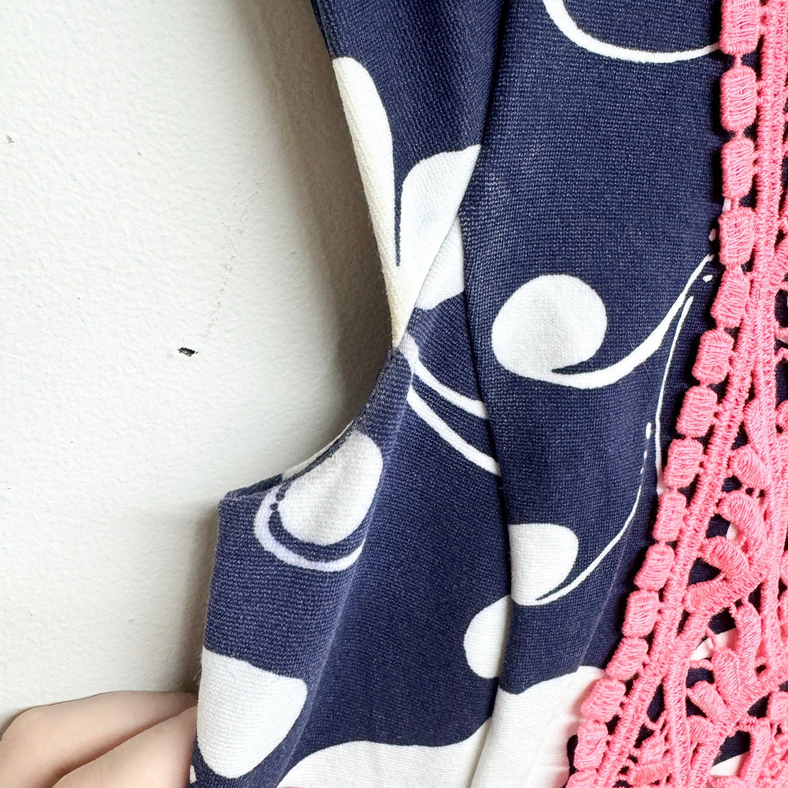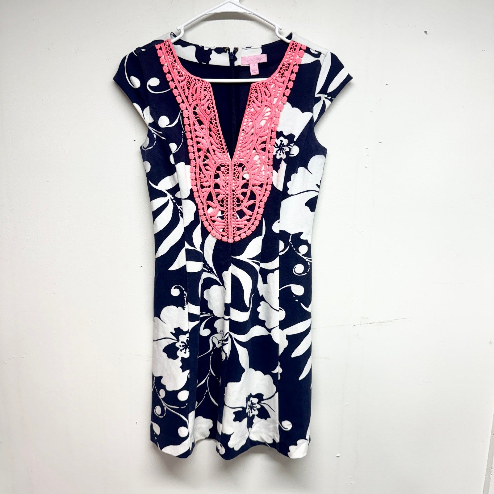 LILLY PULITZER Women Briella Navy and Coral Short Sleeve Mini Dress X-Small