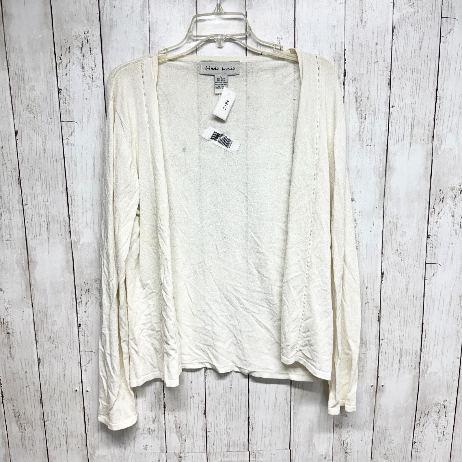 Linda Lucia Sweater Women Size Large Ivory Cream Detail Trim Cardigan Casual