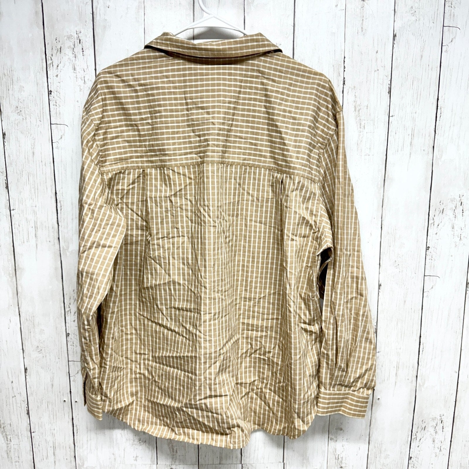 LizSport Shirt Men Size Large Tan Plaid Collared Cotton Long Sleeve Button Down