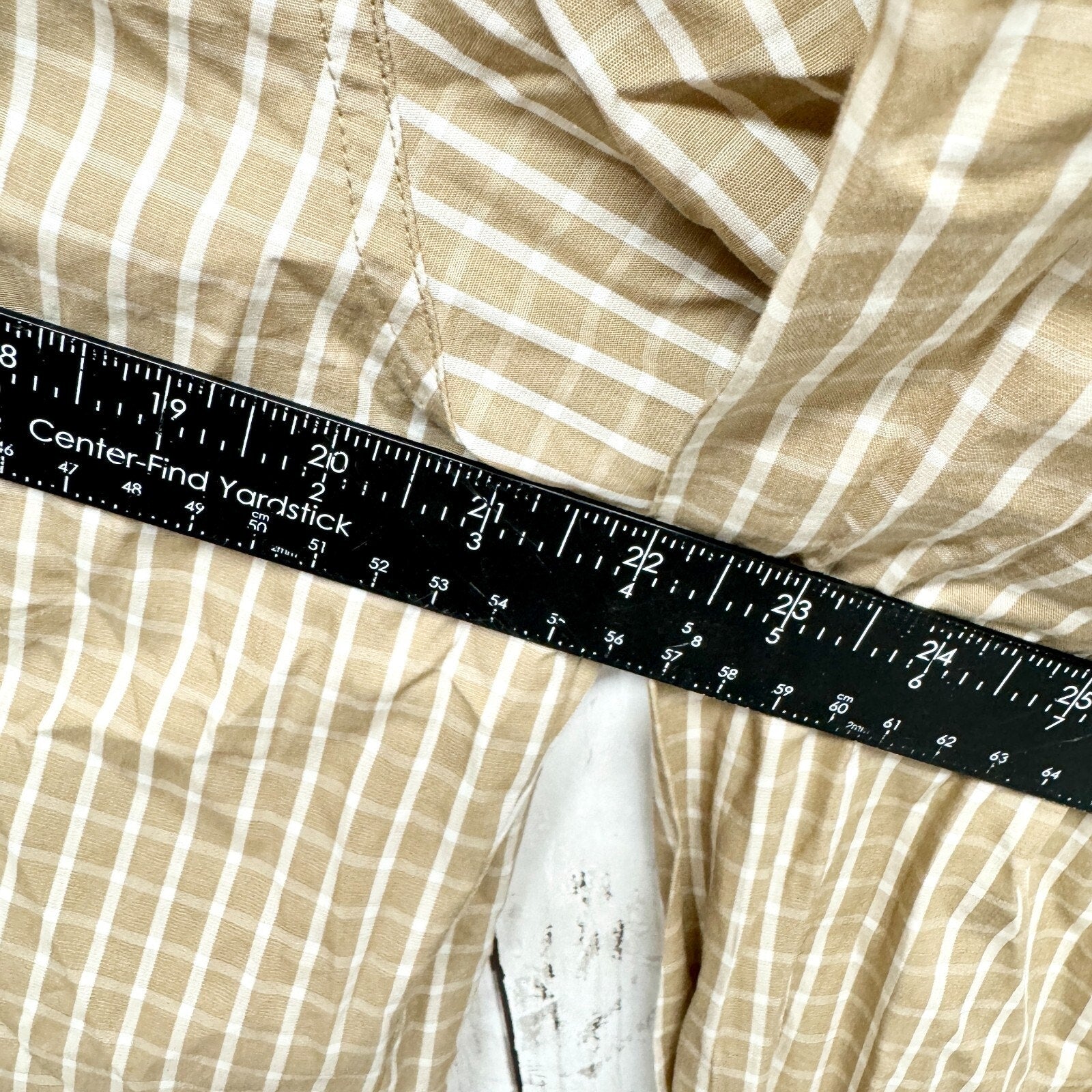 To ensure the best fit, kindly compare the measurements in the pictures with a similar piece that you know fits well. Sizes can differ by brand, possible alterations, and/or garment care.