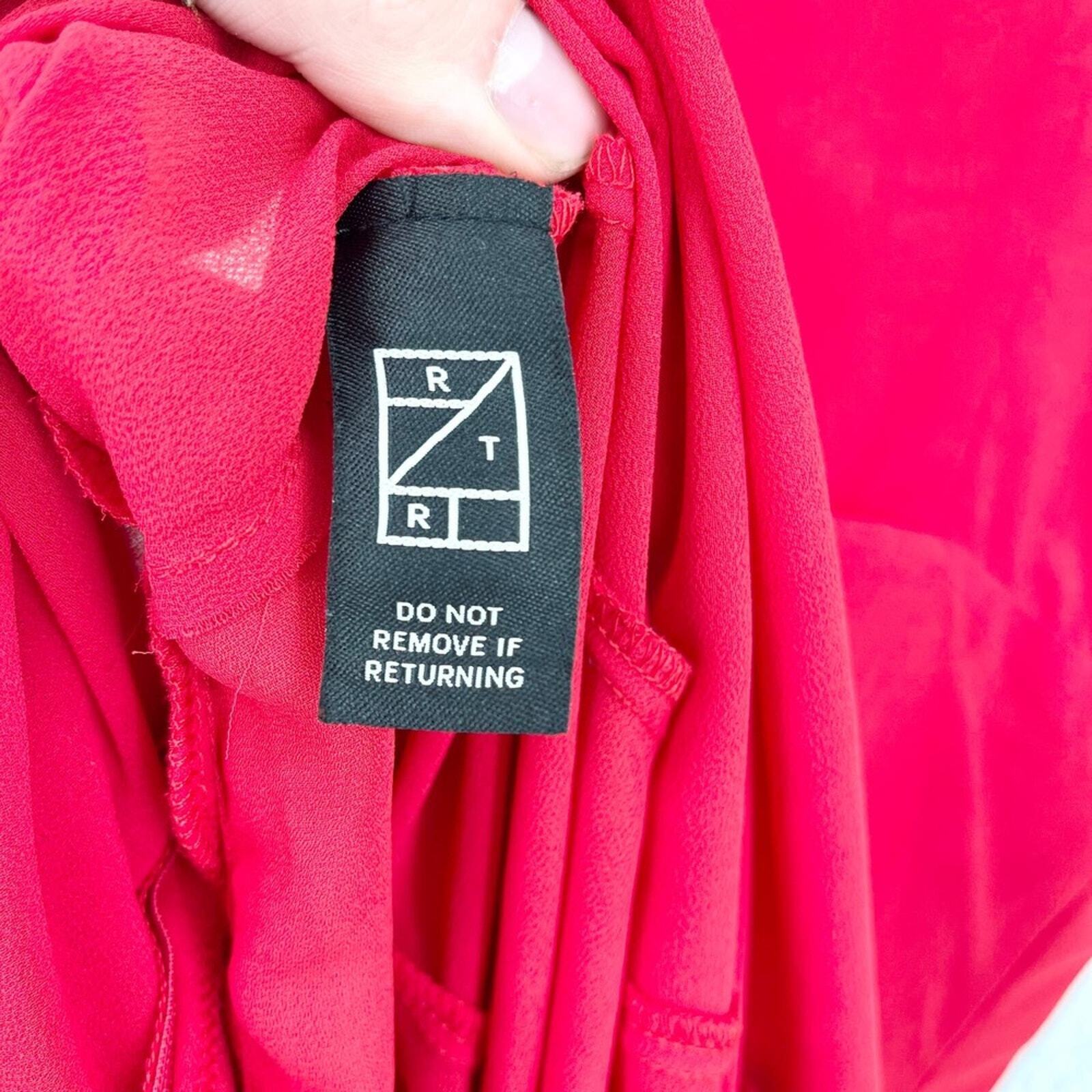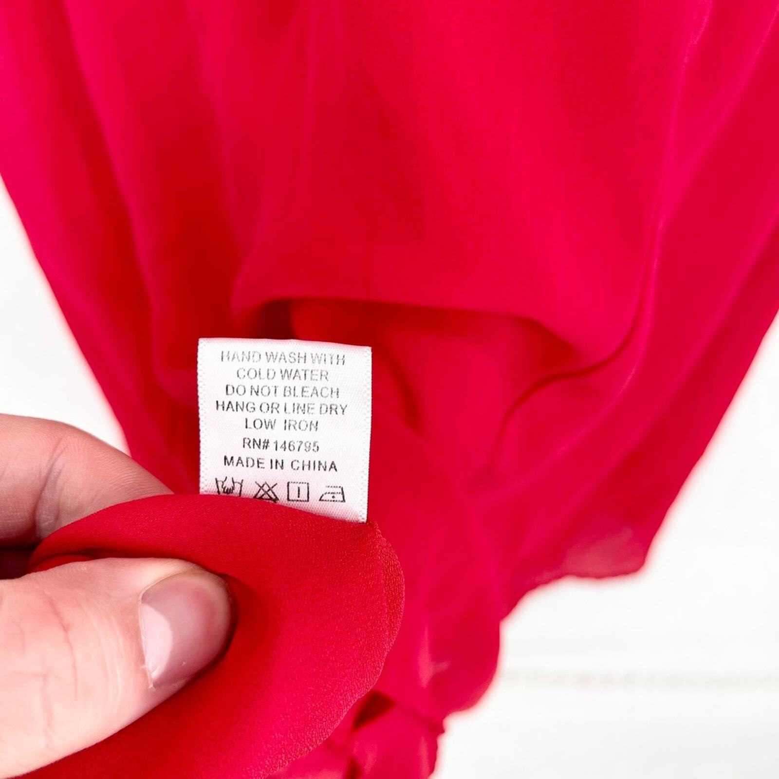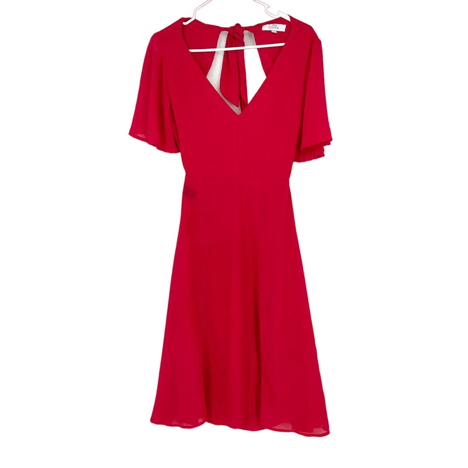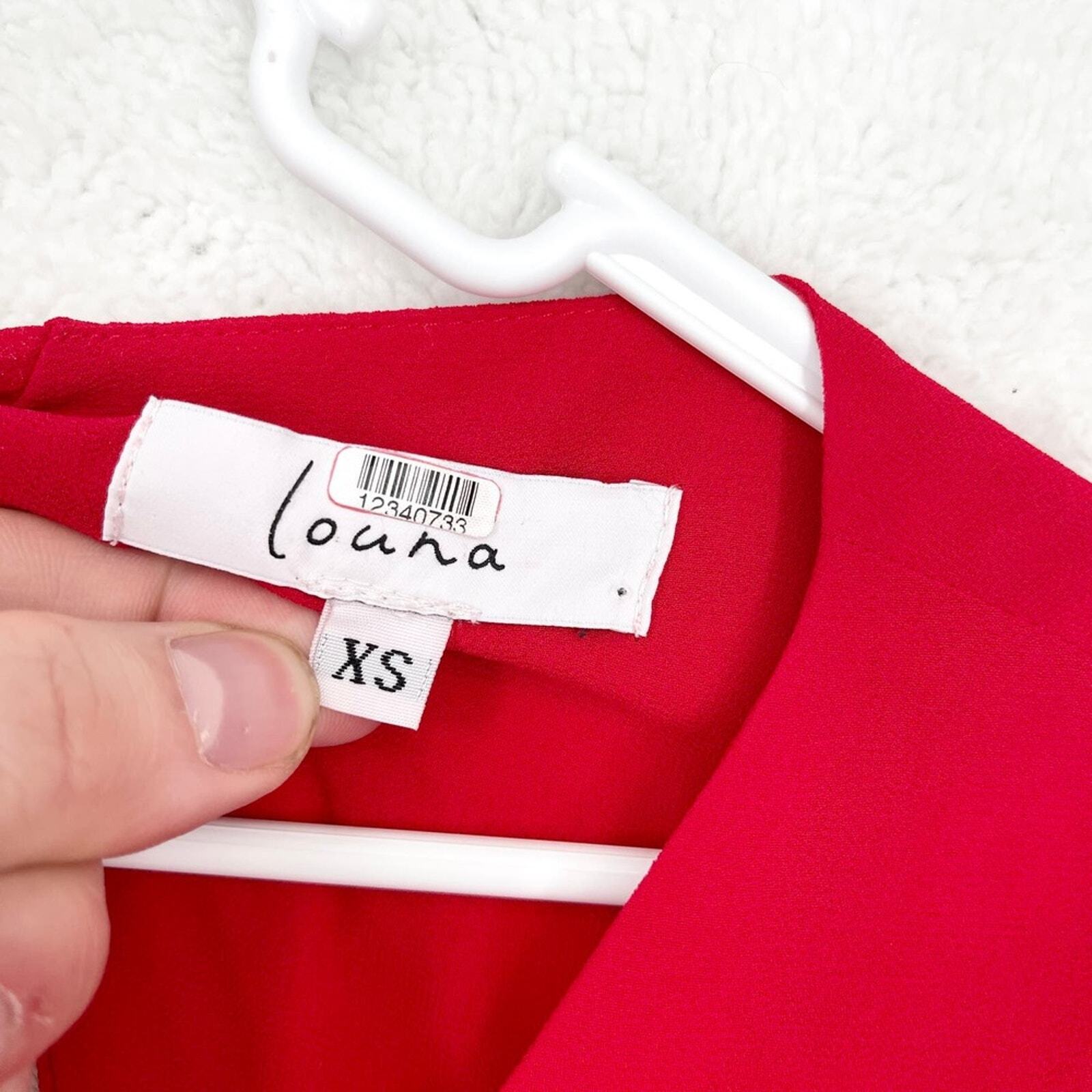 LOUNA Dress Women Size XS Midi Chiffon Red Open Black Deep V Flutter Sleeve