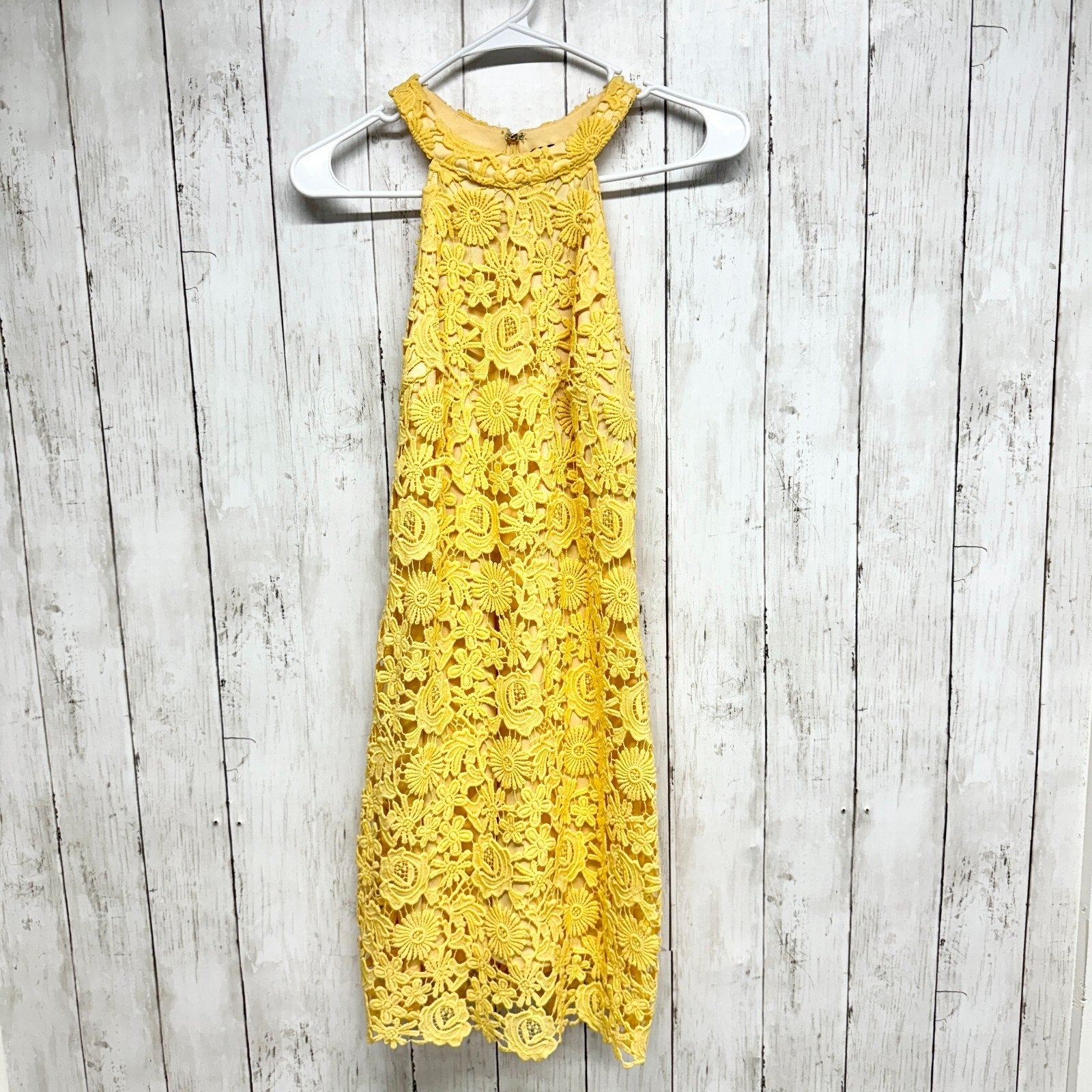 Lulus Dress Women Medium Love Poem Canary Yellow Lace Overlay Sleeveless Mini
