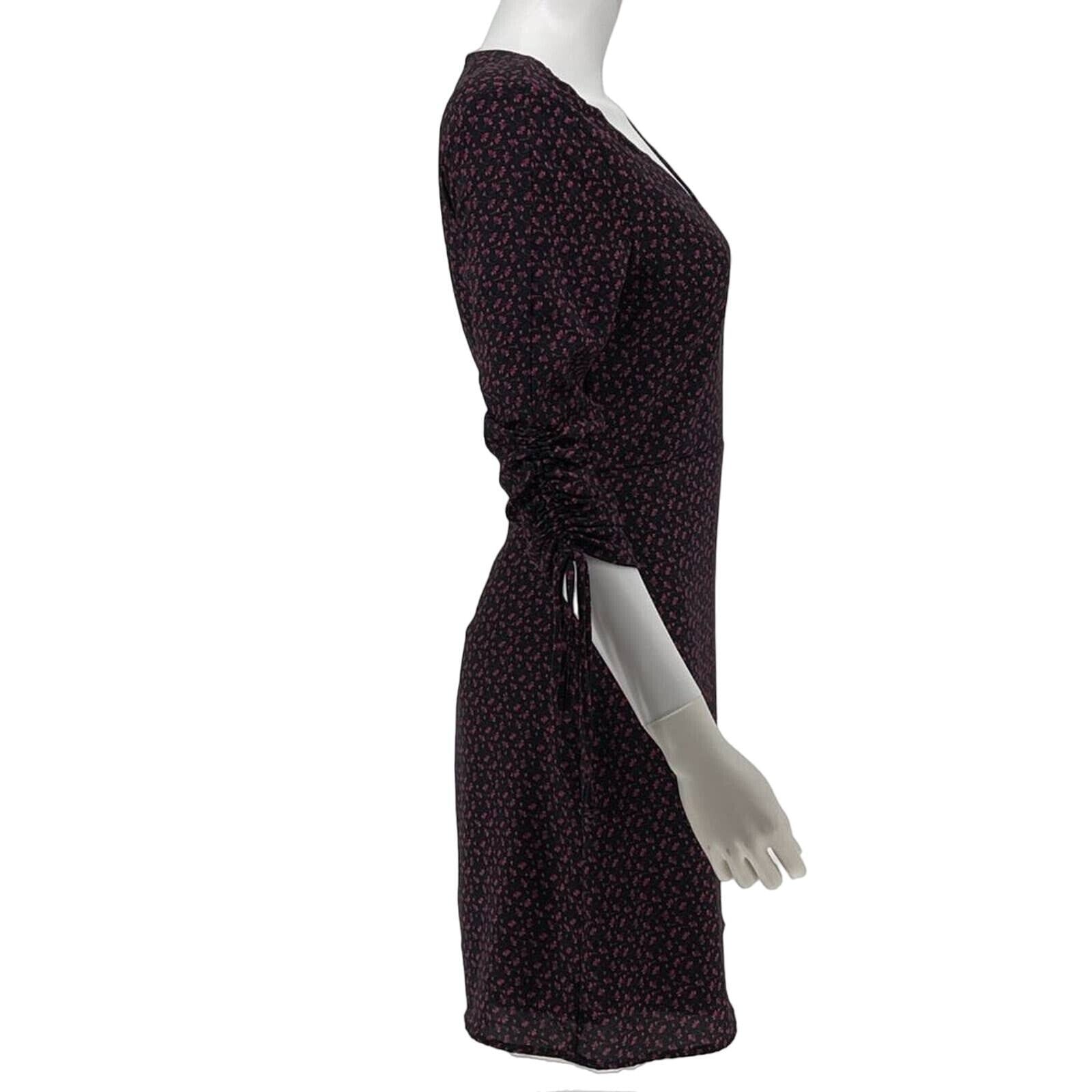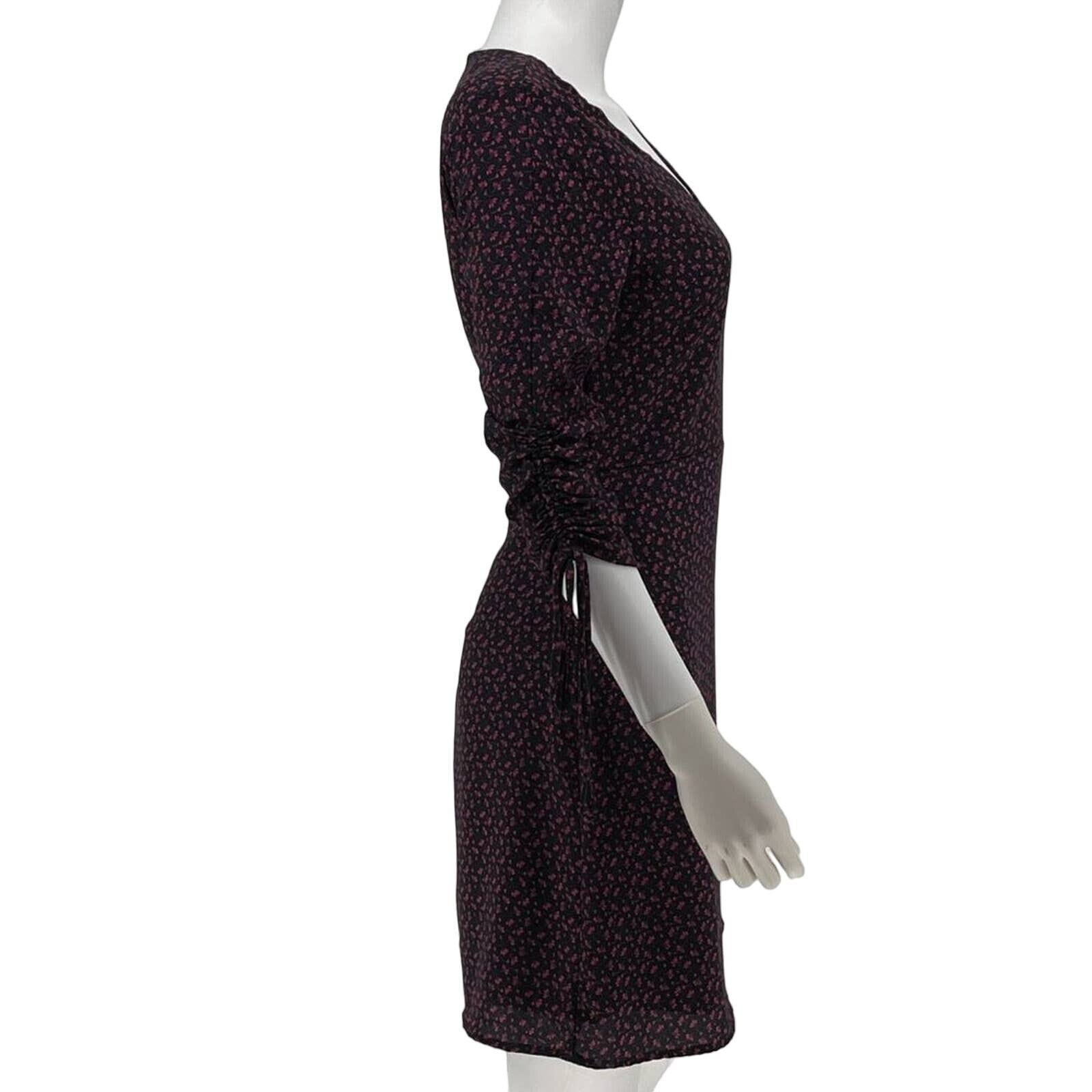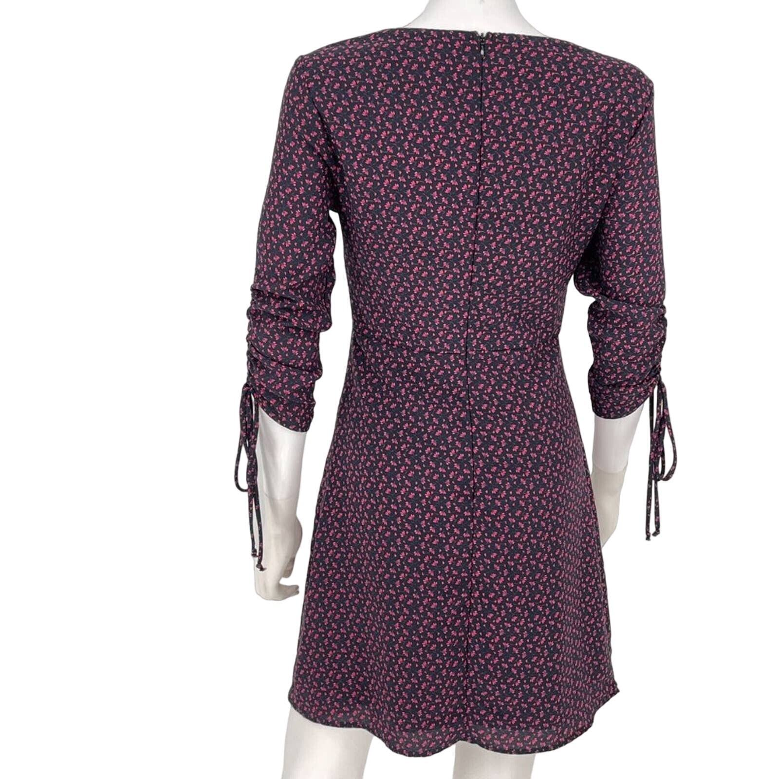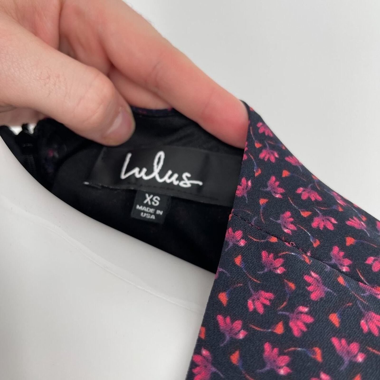 LULUS Dress Women SZ XS Mini Navy Blue Floral Print Three Quarter Sleeve V Neck