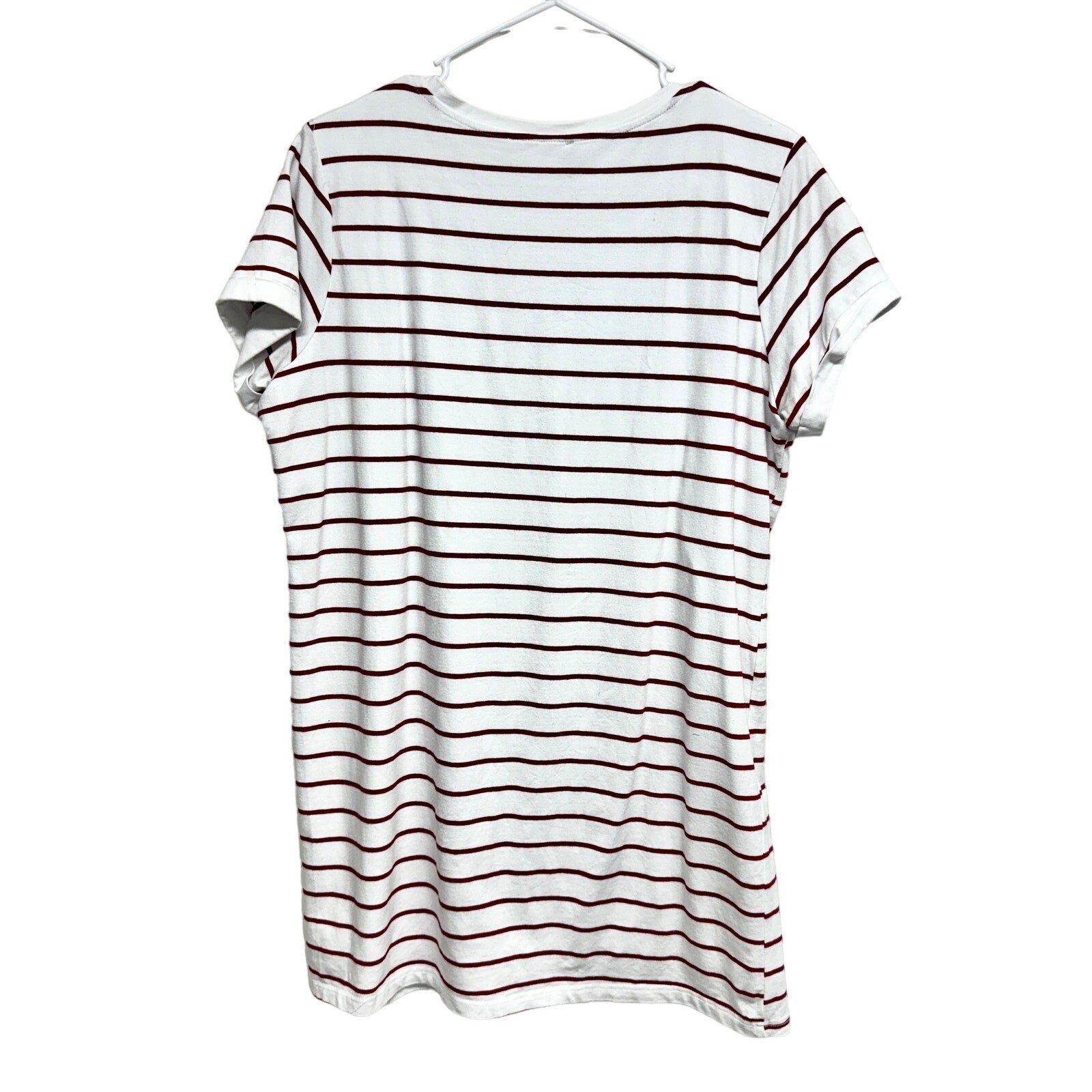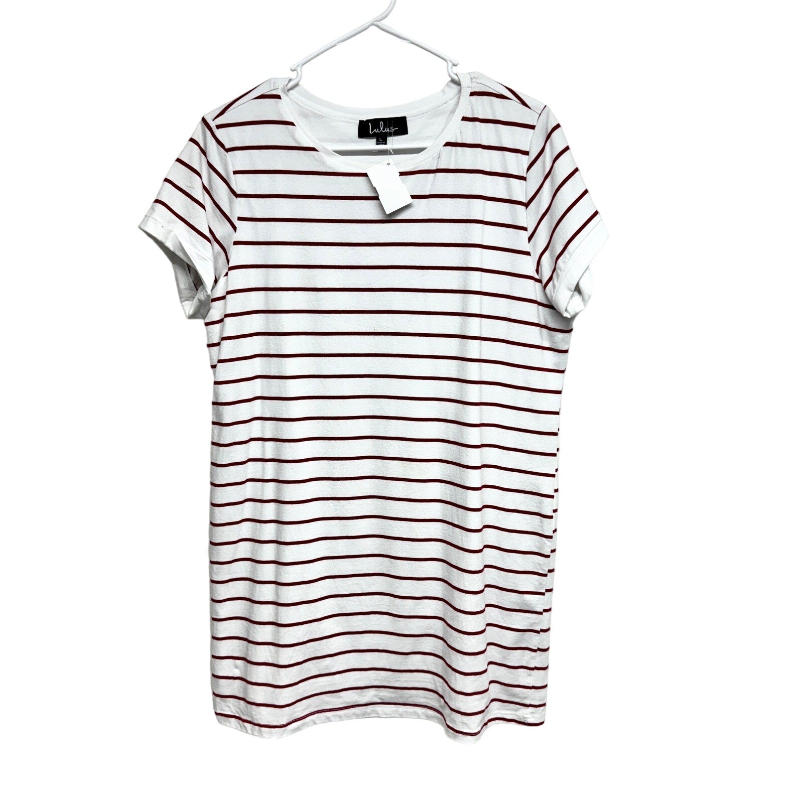 Lulus Women Cafe Society White and Red Short Sleeve Striped Shirt Dress Large