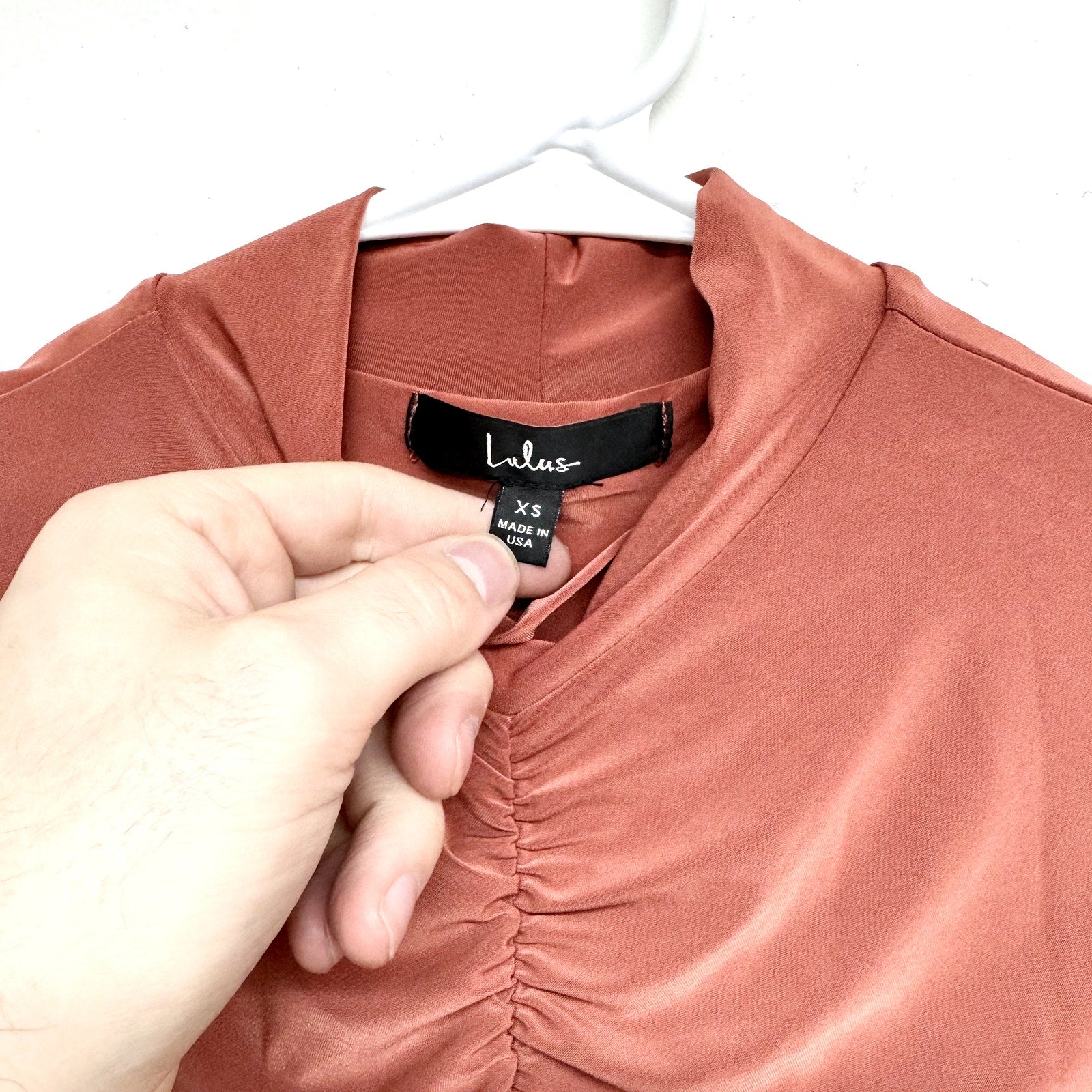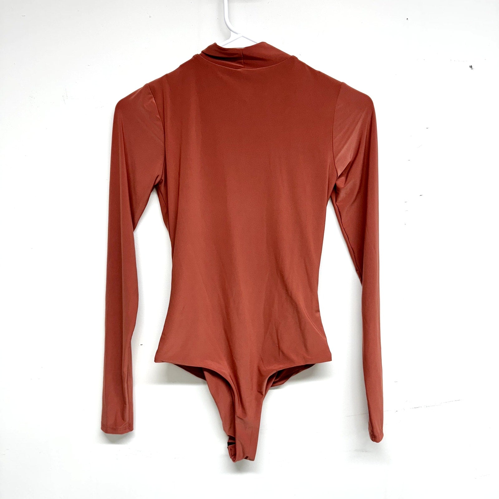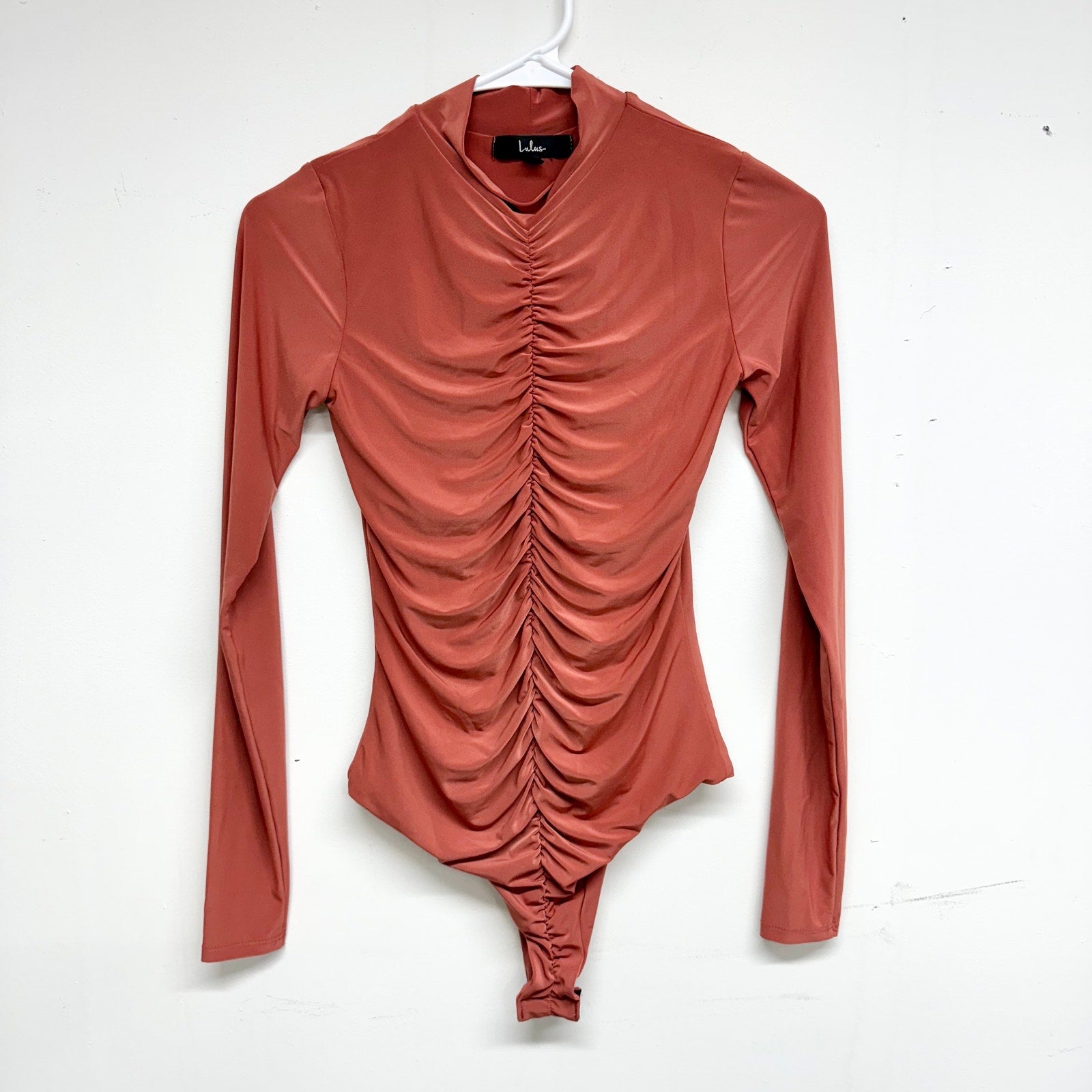 Lulus Women Ruche Around Rust Orange Ruched Mock Neck Bodysuit Size XS